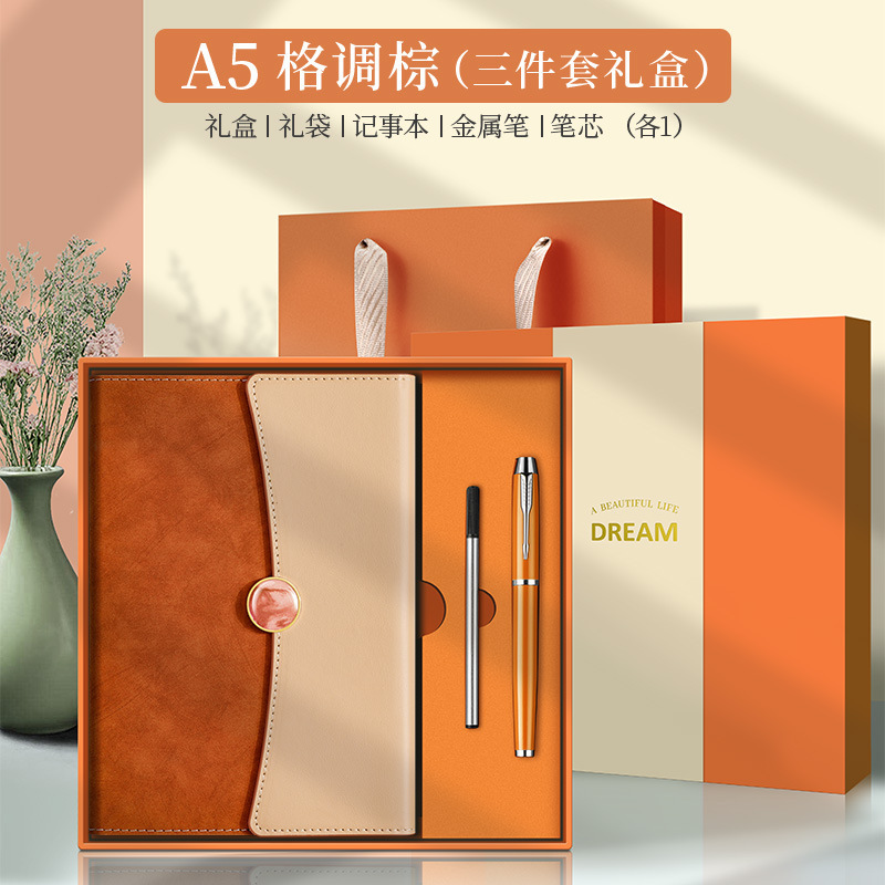 Коричневый набор из 3 предметов формата А5 (ручка для подписи + стержень)