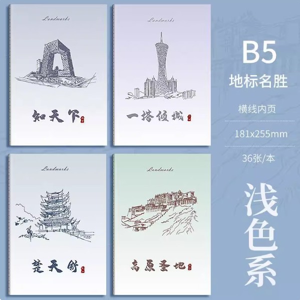 Фотокнига B5 Landmark, светлые цвета [набор из 4 шт.] — по одному экземпляру каждого стиля в полном наборе.
