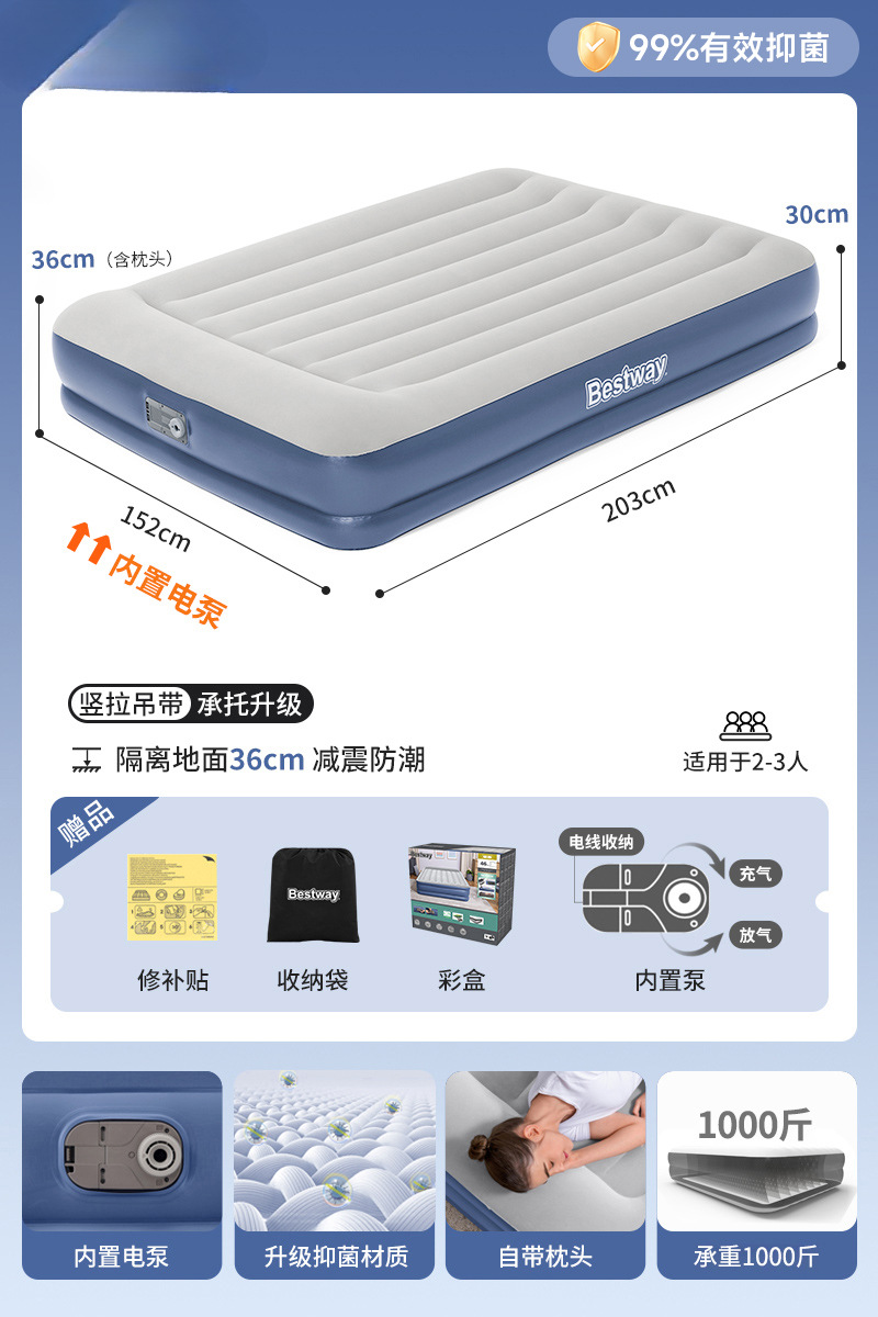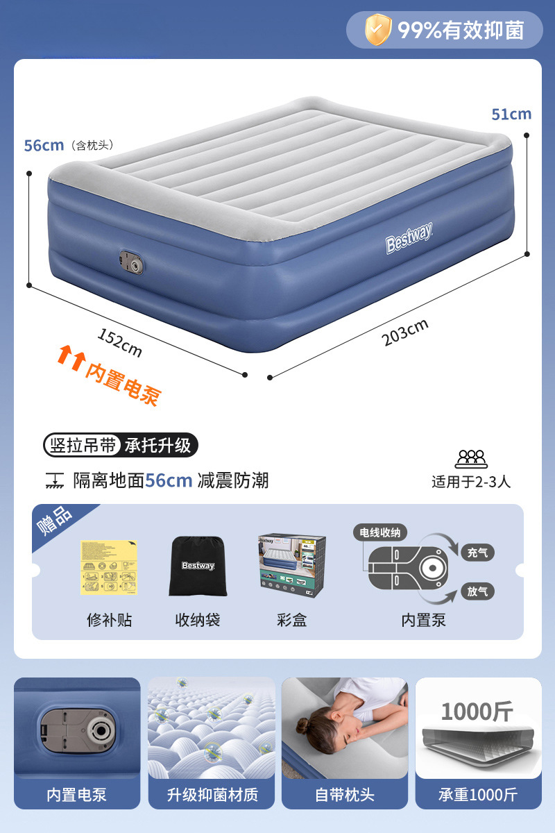 [Увеличенный на 56 см] Бытовой насос для трех человек — в комплект входит подушка?