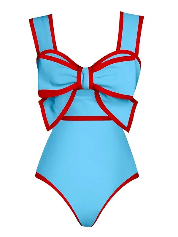 2024 новый бант свежий широкий плечо и талия цельный купальник спортивный солнцезащитный крем тонкий женский пляжный купальник