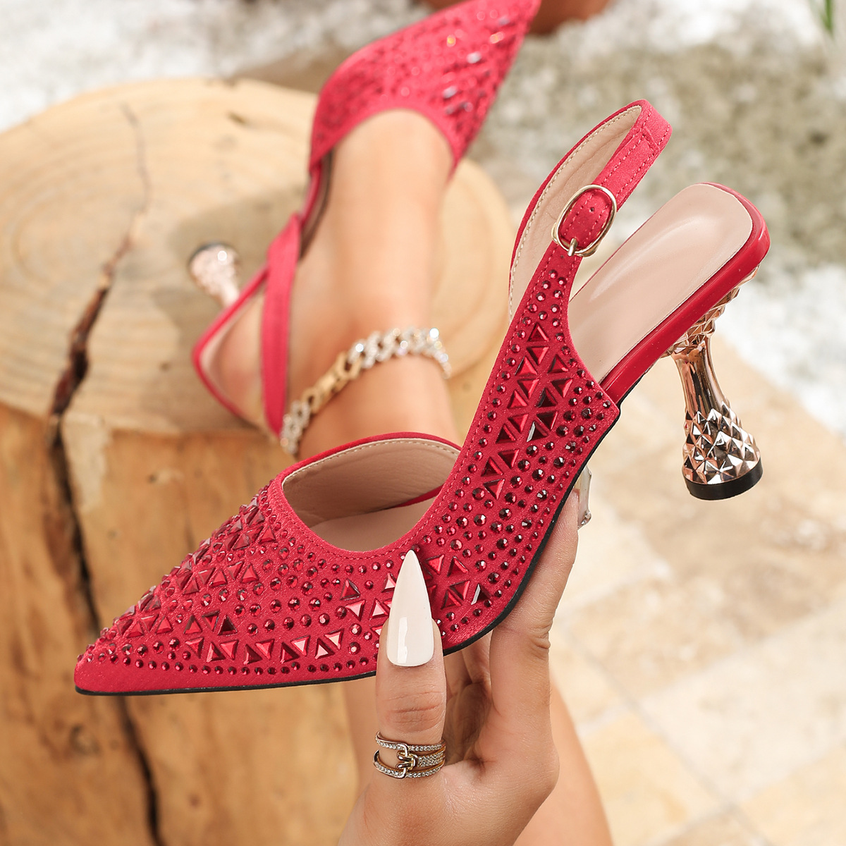 Главная страница > Французские ретро-сандалии для женщин с ажурным плетением, белые, с ремешком сзади, на массивном каблуке, высокие каблуки, элегантный заостренный носок.