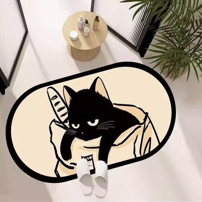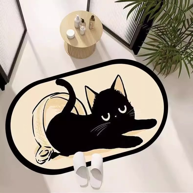 Главная страница > Напольный коврик из диатомовой грязи с рисунком котенка, милый грязеотталкивающий противоскользящий коврик для входной двери, ванная комната, туалет, водопоглощающий быстросохнущий ковер