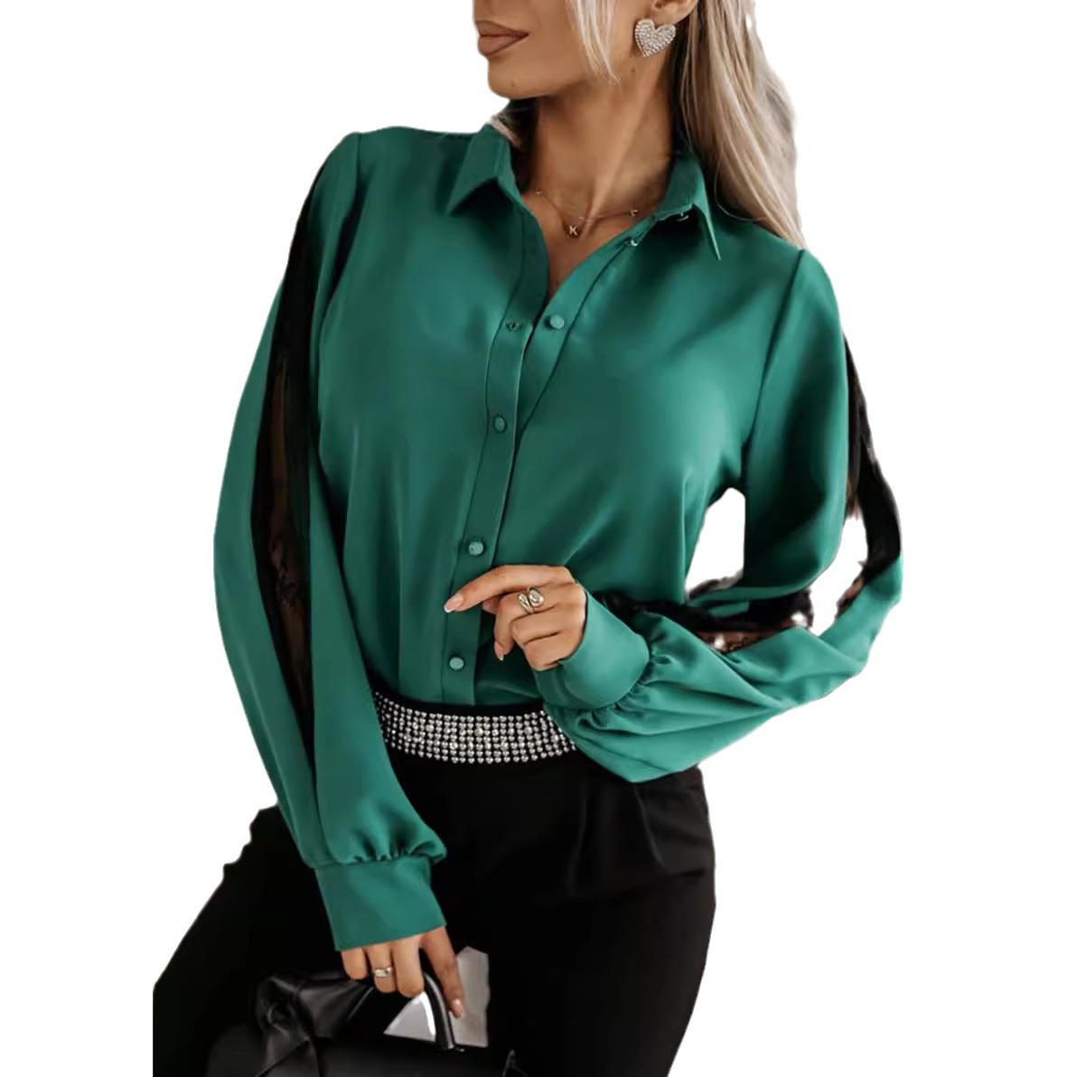 2024 Внешняя торговля женская одежда Европейская и американская Европейская станция Amazon трансграничная весенне-летняя сетчатая шитая рубашка с длинными рукавами