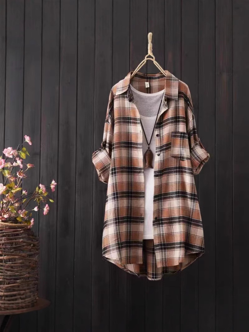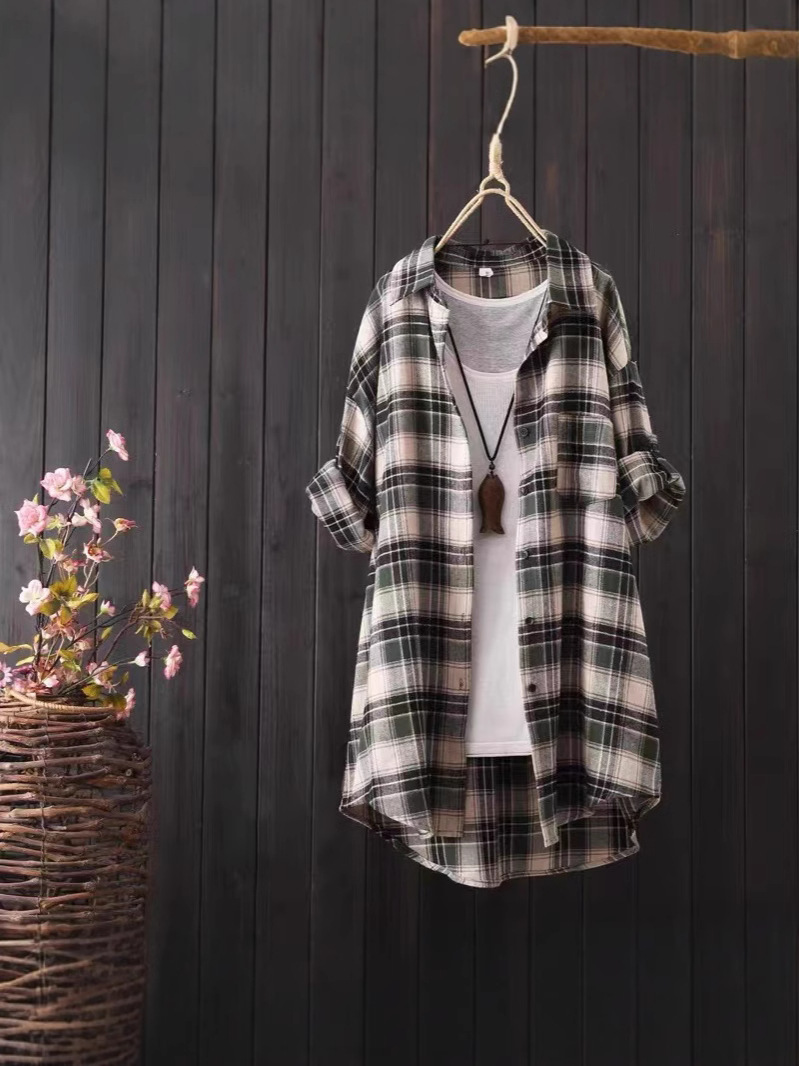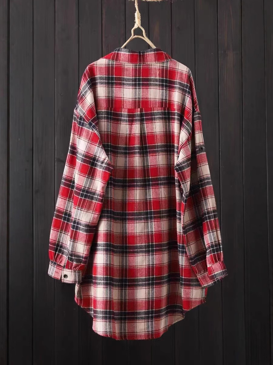 Главная страница > Новая свободная повседневная рубашка в клетку для женщин, средней длины, осенняя рубашка-куртка в популярном гонконгском стиле