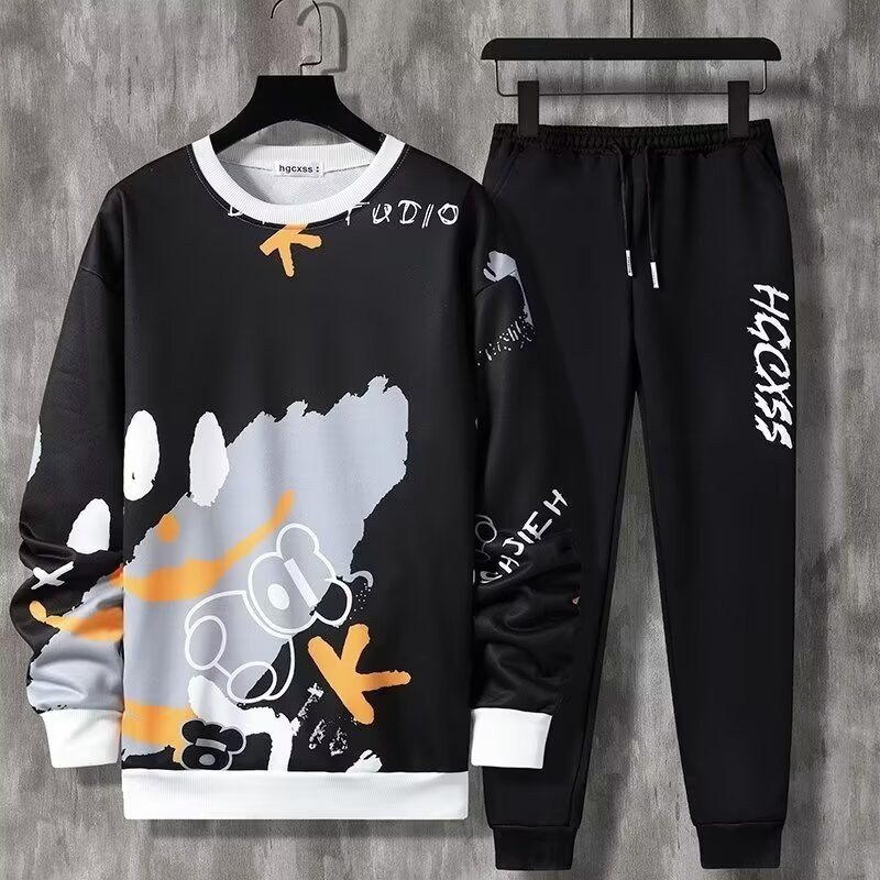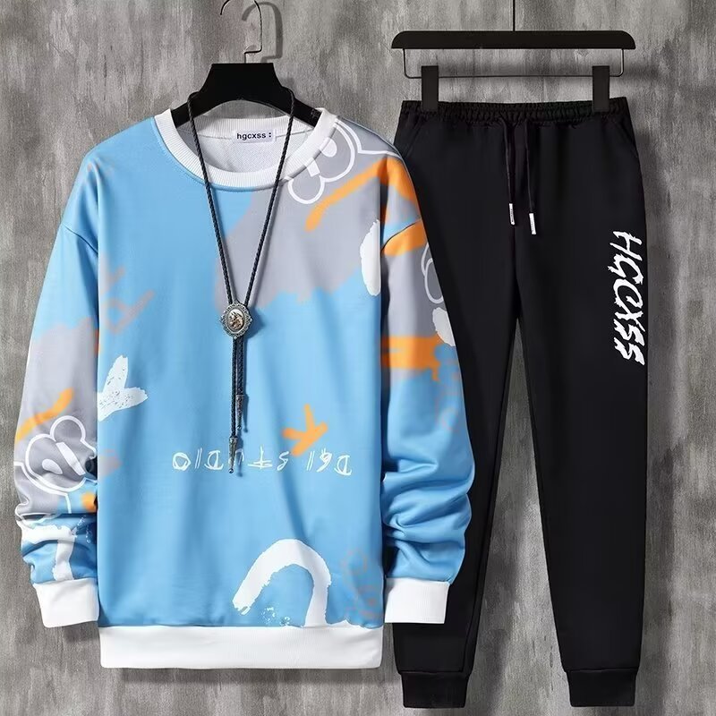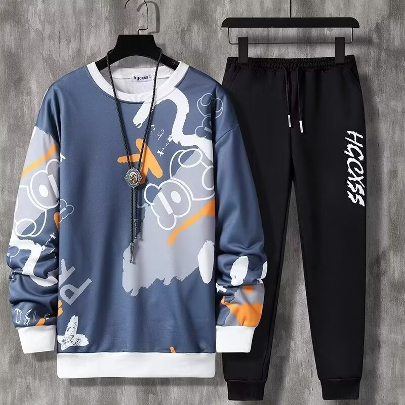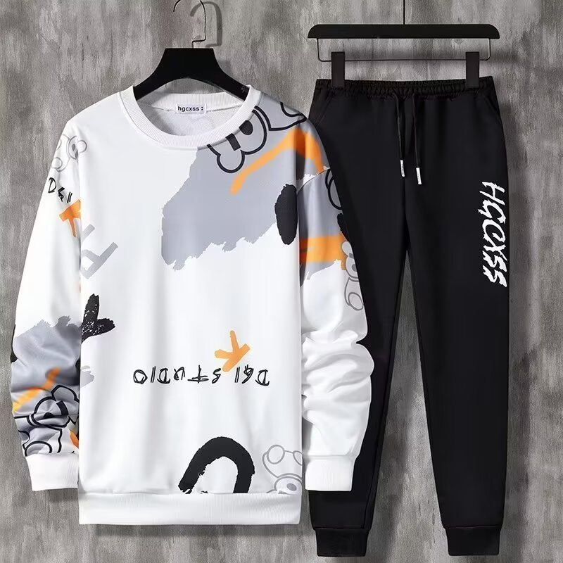 Молодежная студенческая мода мужская одежда весна и осень новая печать спорт и досуг набор из двух частей с длинными рукавами с круглым вырезом оптовая продажа