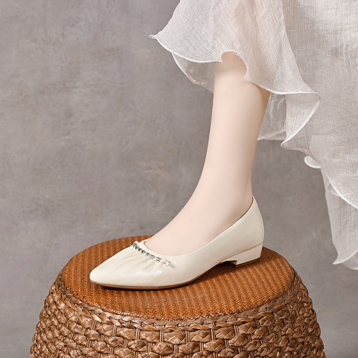 Главная страница > Женские плиссированные туфли-лодочки с острым носком, женские туфли без шнуровки на толстом каблуке из натуральной кожи, универсальные женские кожаные туфли на низком каблуке, всесезонная обувь на мягкой подошве.