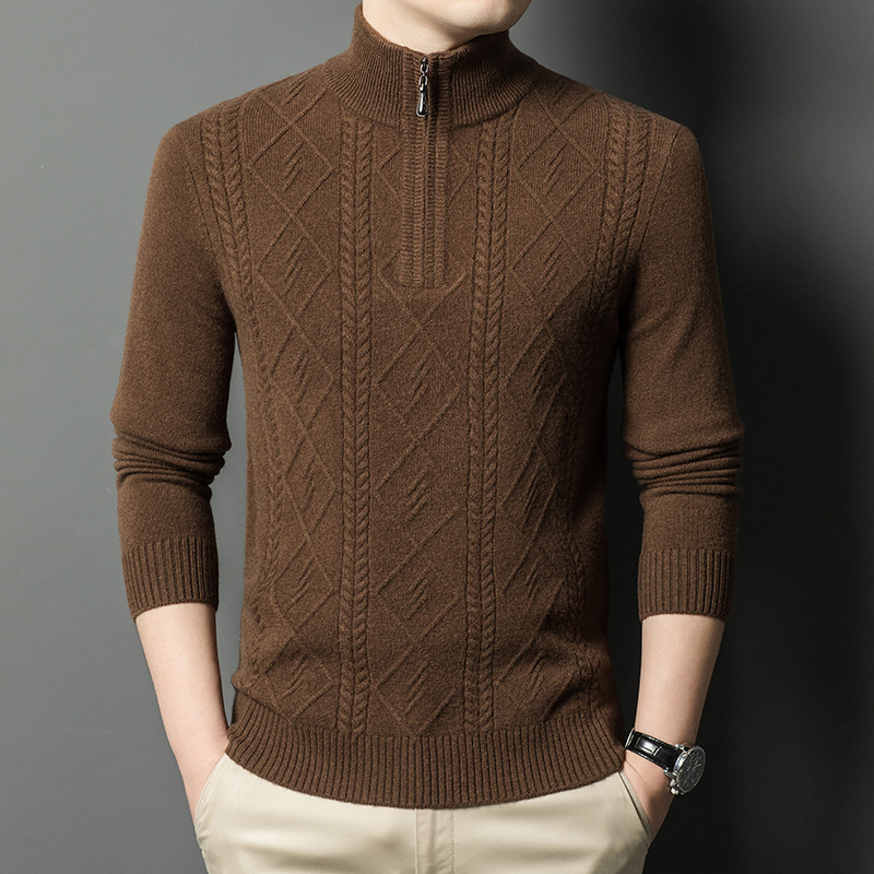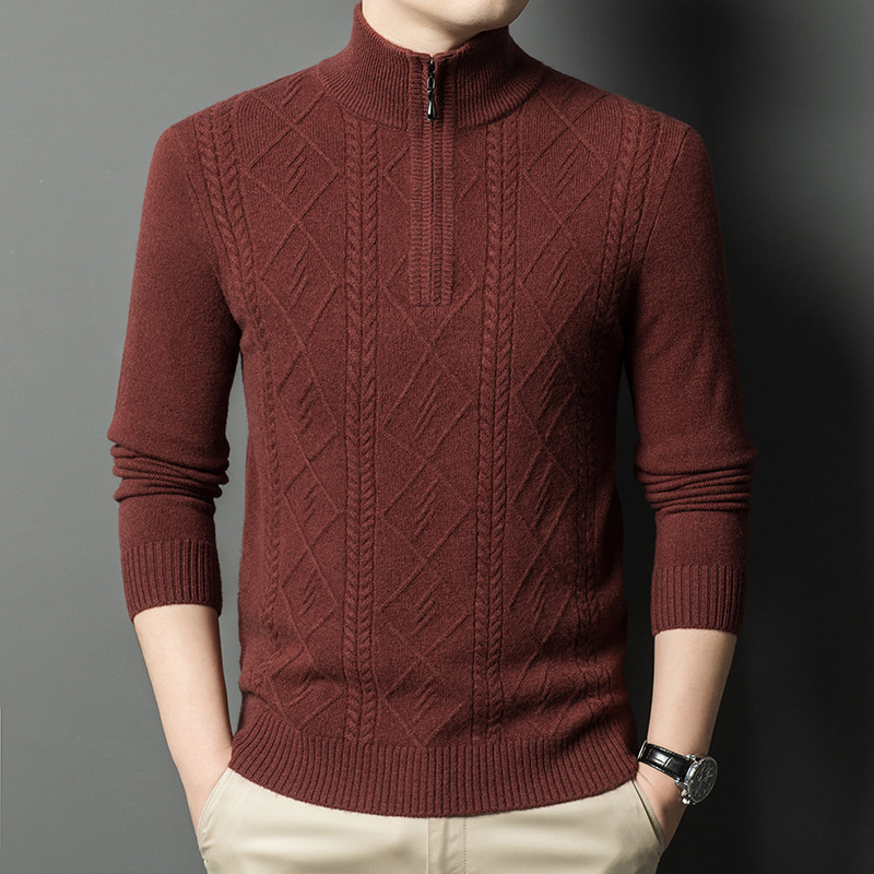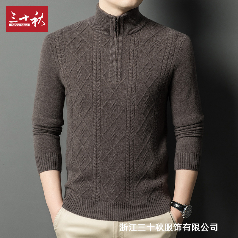 Тридцатая осень моды жаккардовая шерсть мужская толстовка на молнии с толстым воротником