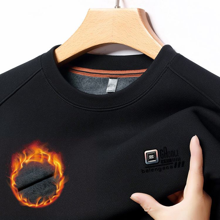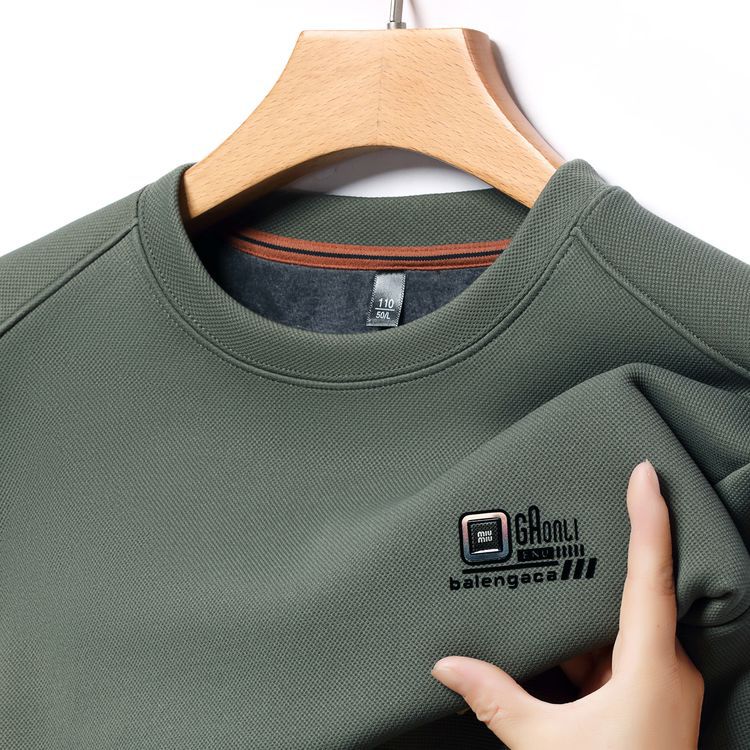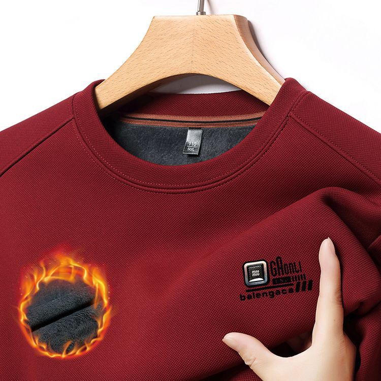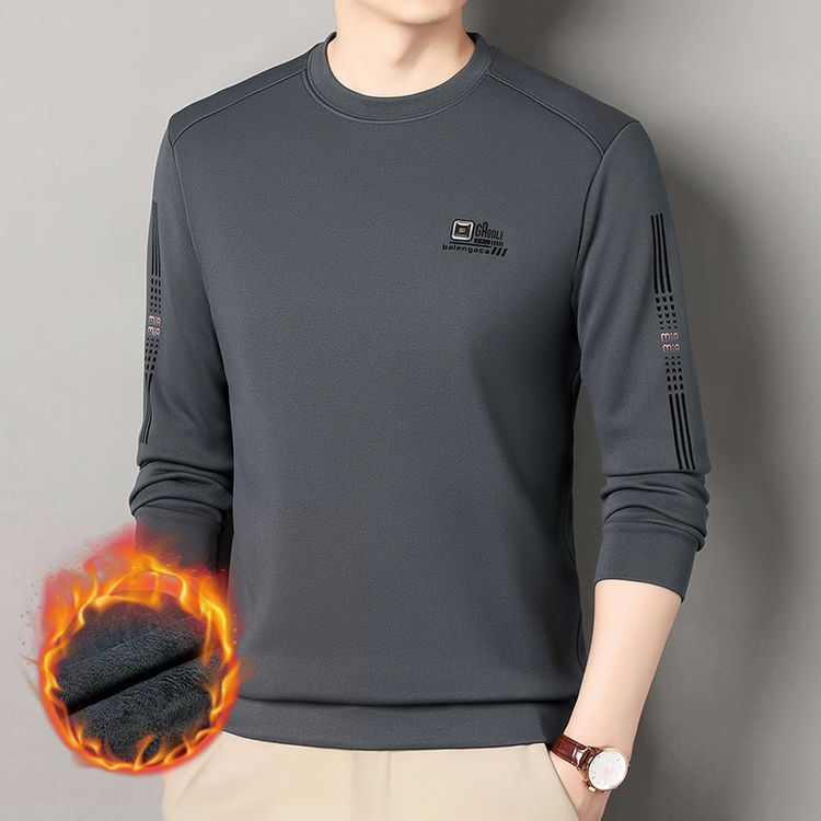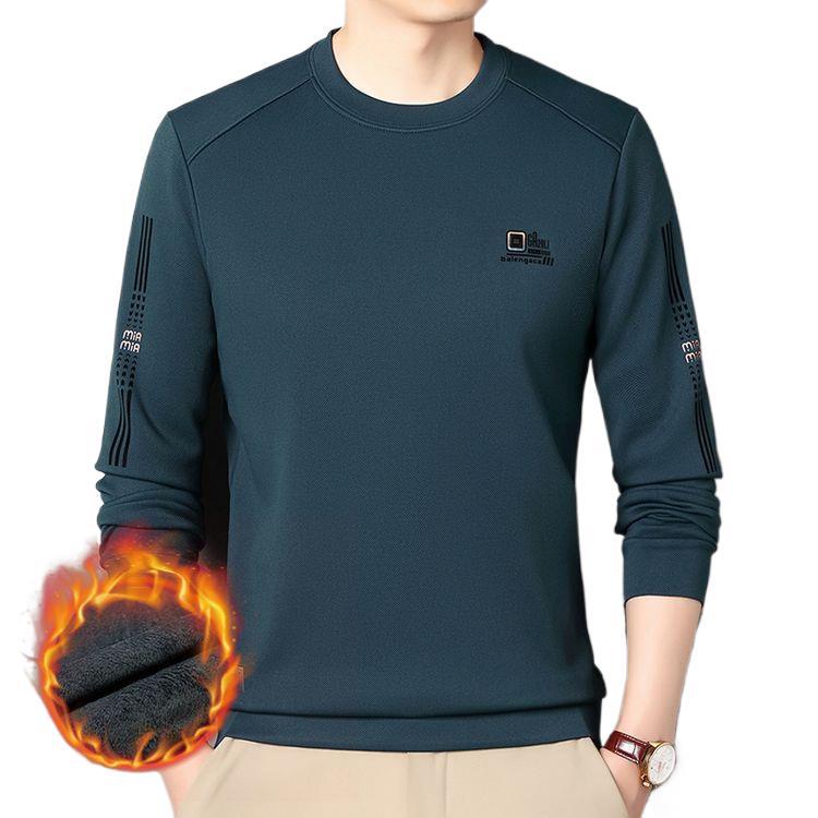 24 осенние и зимние новые мужские плюшевые толстые толстушки с длинными рукавами повседневные дикие круглые вырезы тонкая рубашка с принтом