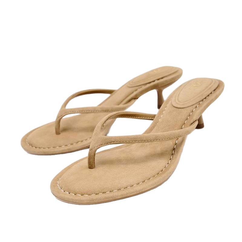 Главная страница > Испанские женские шлепанцы на высоком каблуке ZA цвета хаки, простой стиль для отдыха, сандалии-стринги большого размера.
