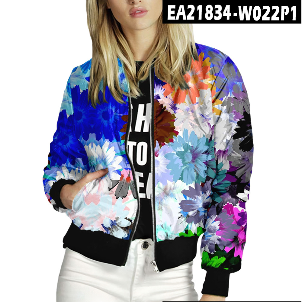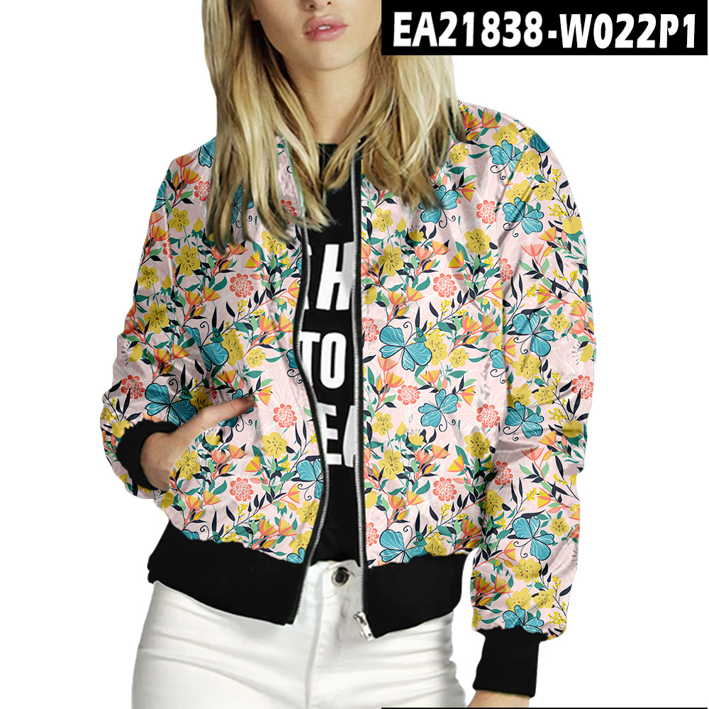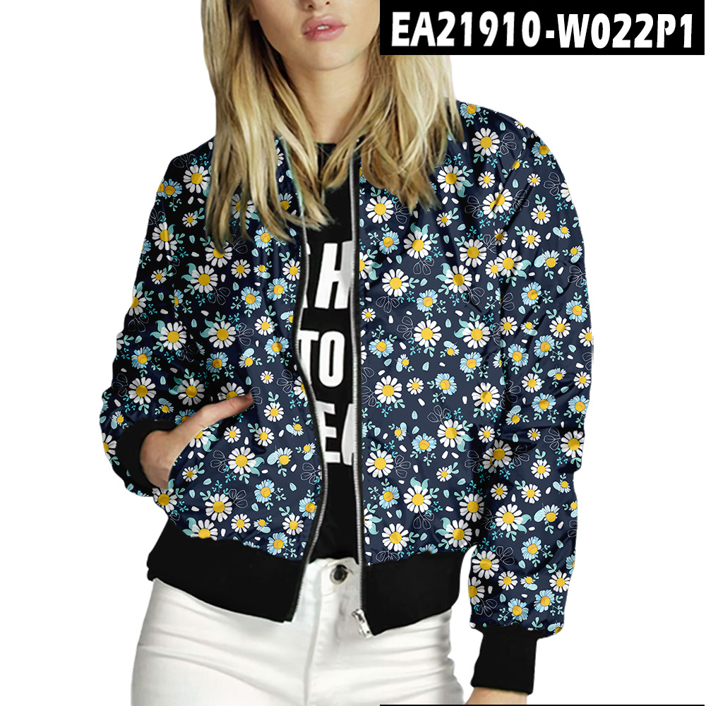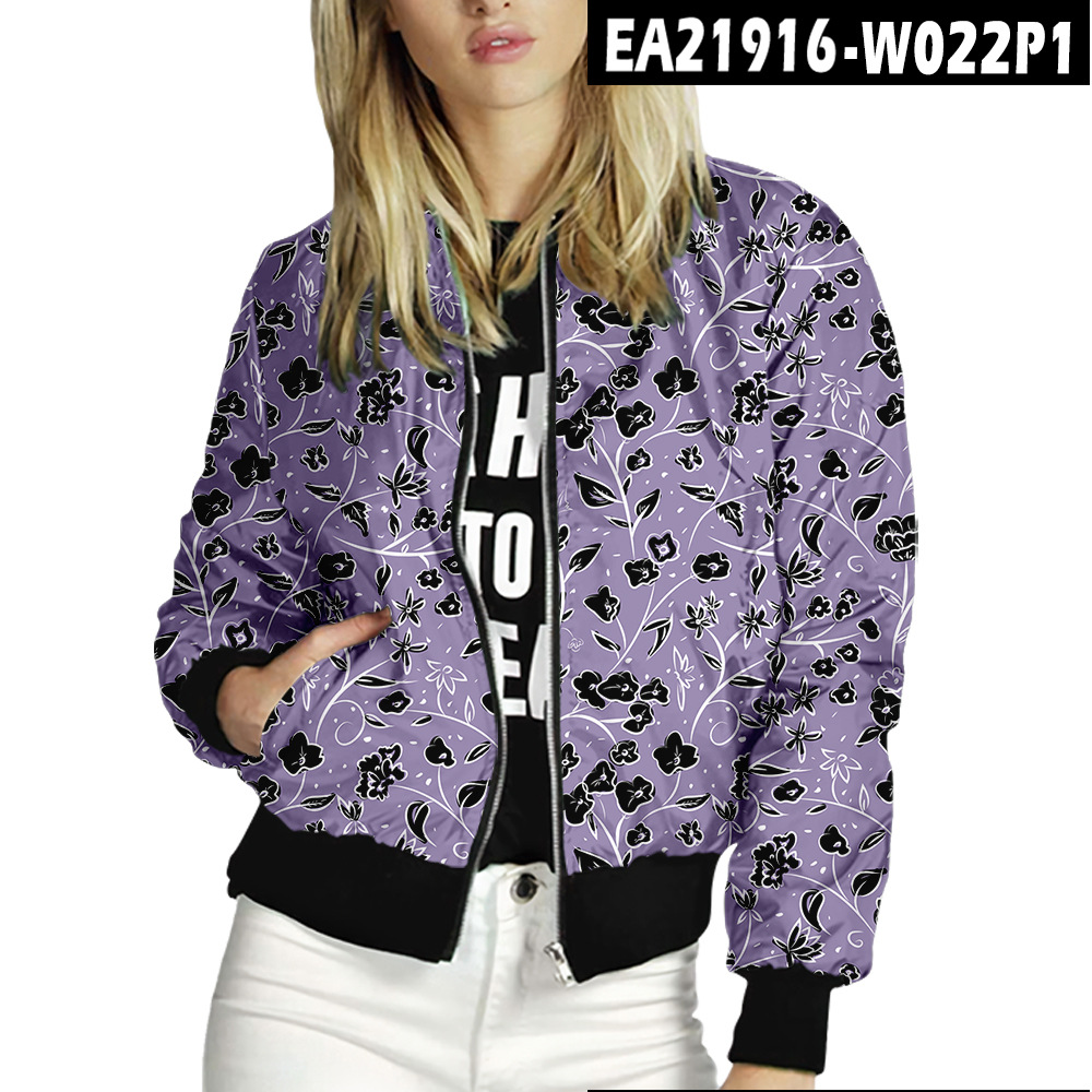 Главная страница > Трансграничный осенний новый продукт с цветочным узором, тонкая женская бейсбольная форма с цифровой печатью и воротником-стойкой