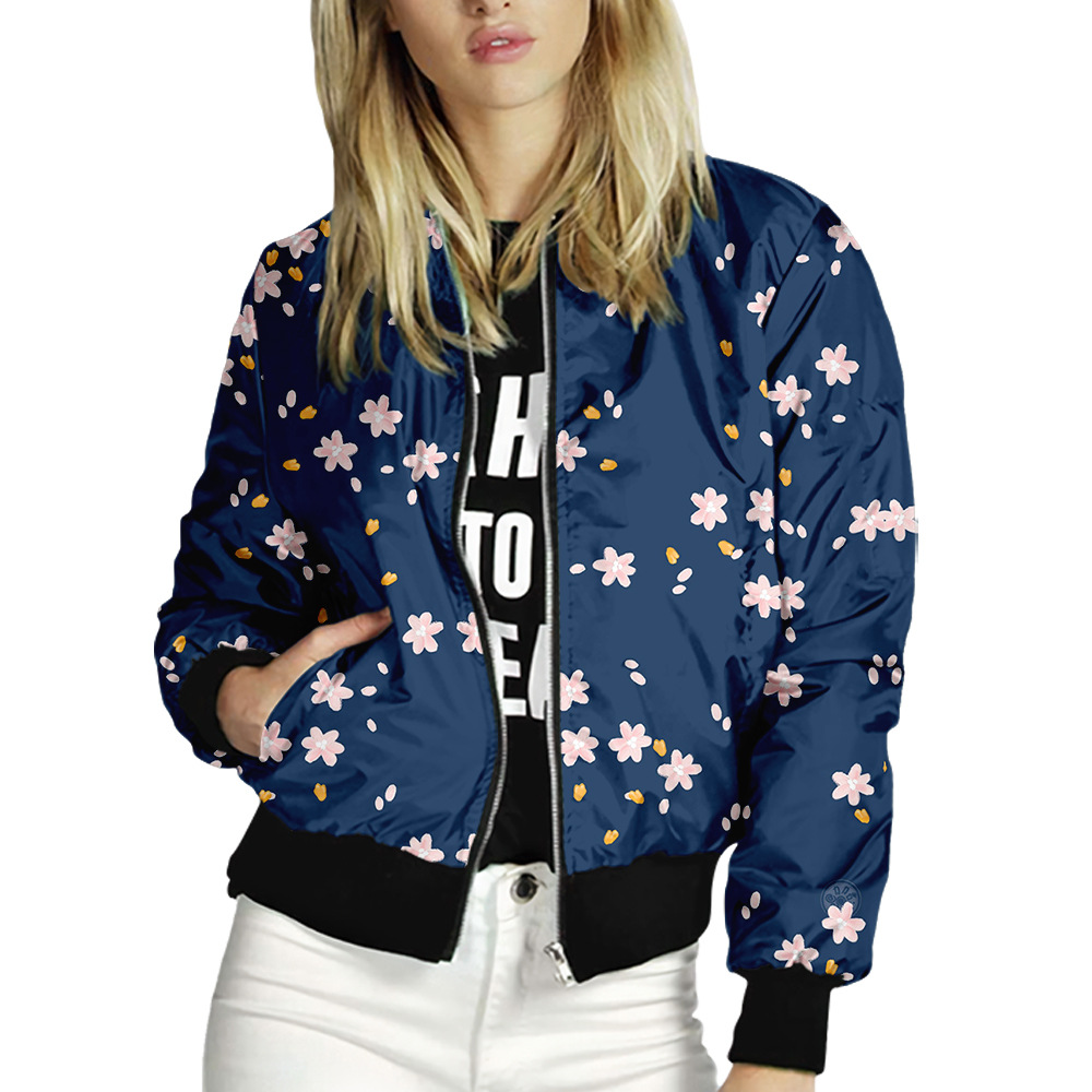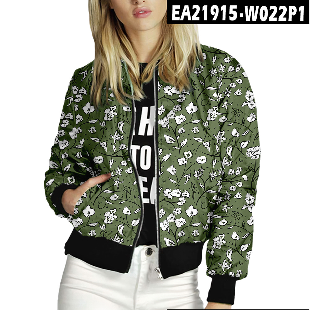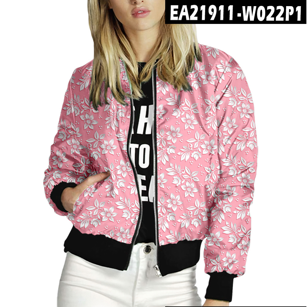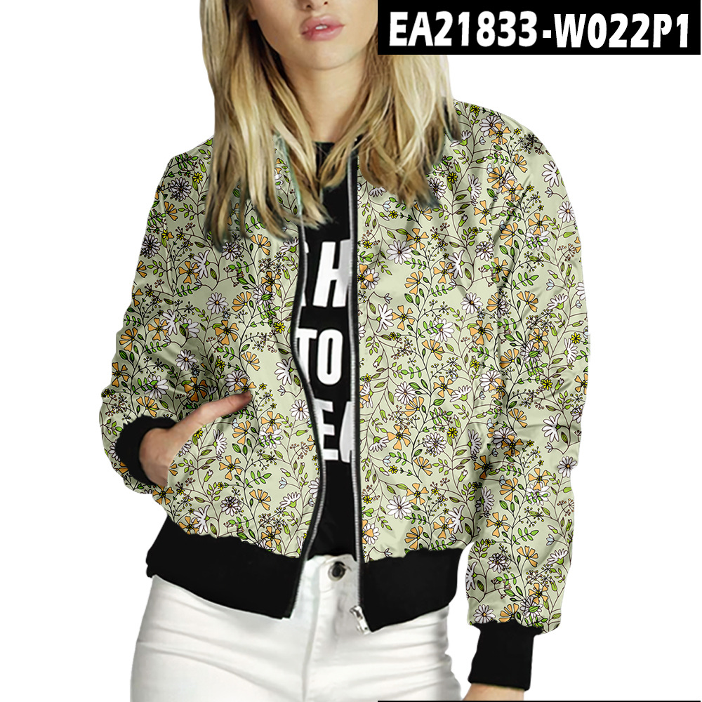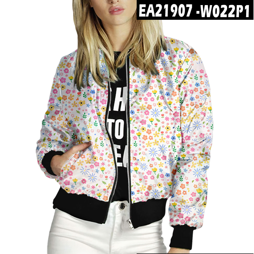 Главная страница > Трансграничный осенний новый продукт с цветочным узором, тонкая женская бейсбольная форма с цифровой печатью и воротником-стойкой