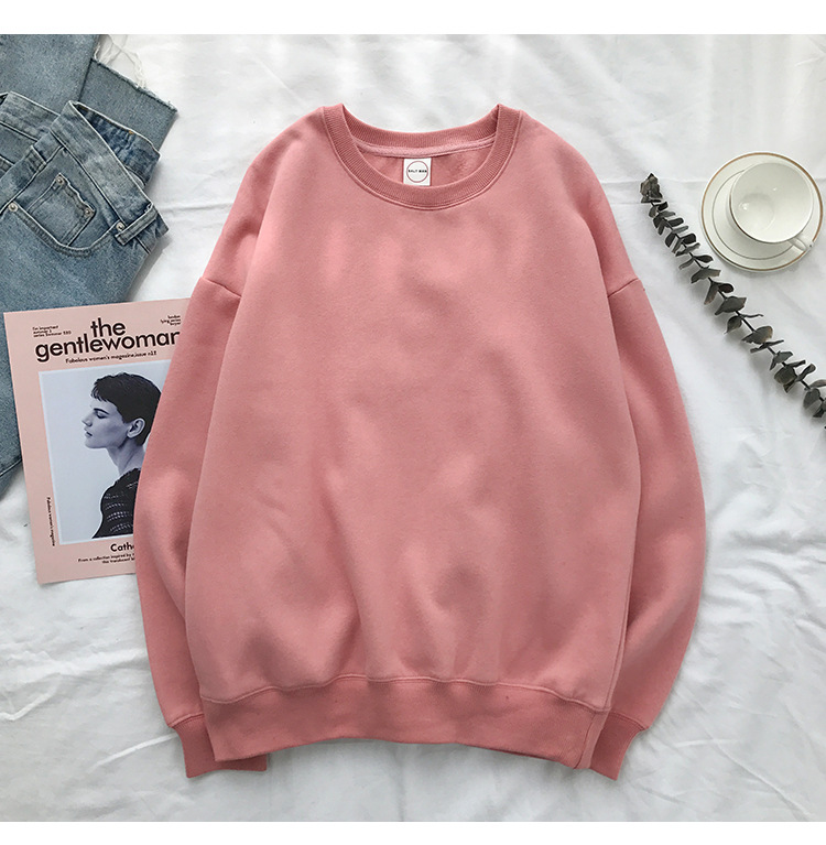 Главная страница > [24-цветный свитер на флисовой подкладке] В наличии партия новых трансграничных женских однотонных курток с круглым вырезом и подкладкой для студентов