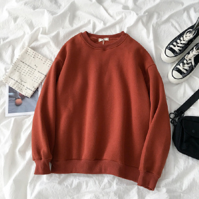 [24-цветный свитер на флисовой подкладке] В наличии партия новых трансграничных женских однотонных курток с круглым вырезом и подкладкой для студентов