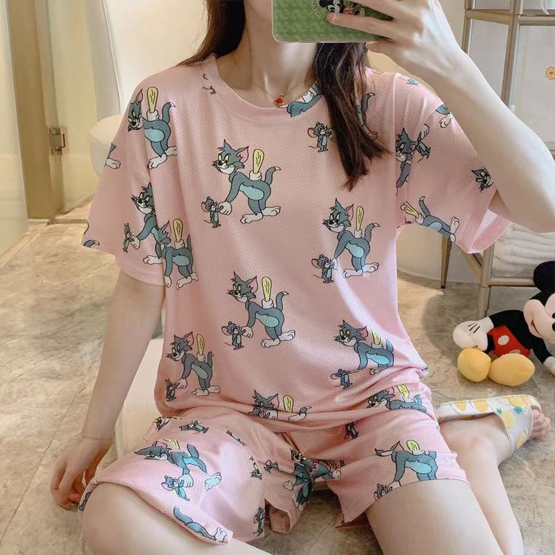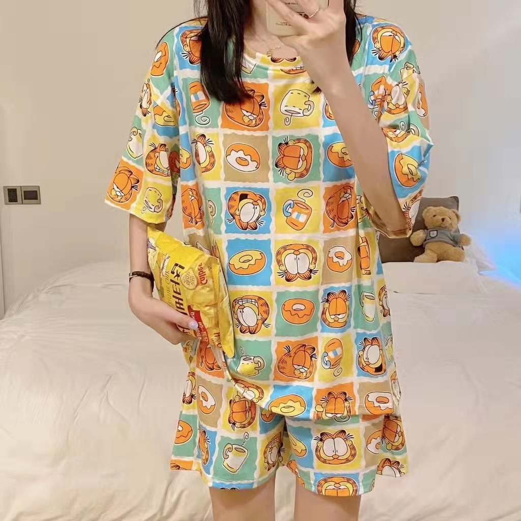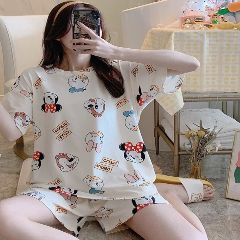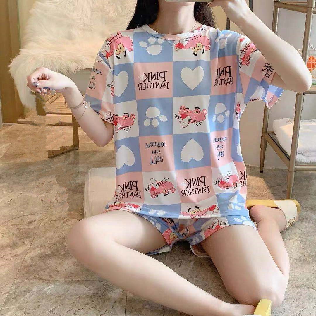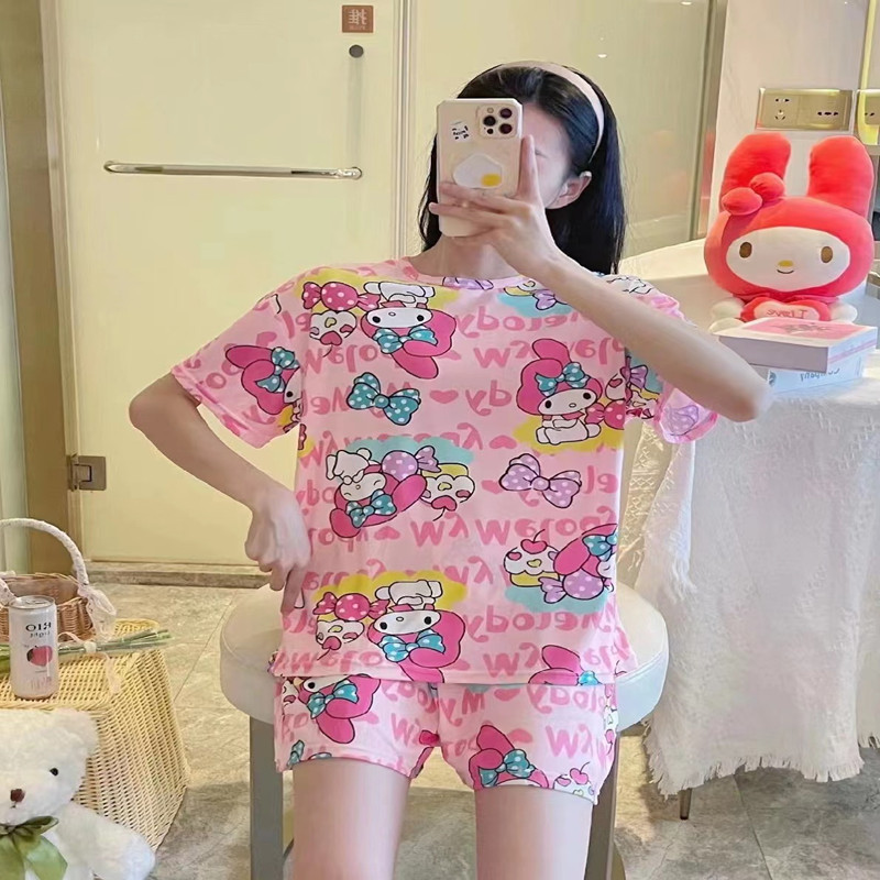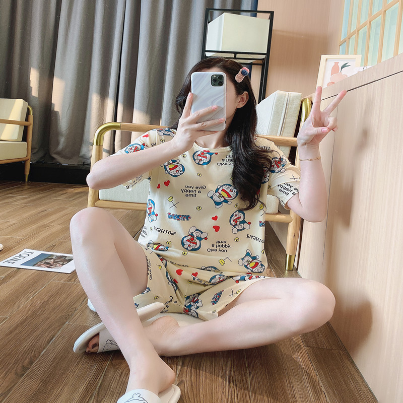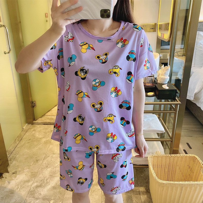 Главная страница > Женские пижамы, летние шорты с короткими рукавами, женский повседневный тонкий стиль с героями мультфильмов, можно носить на улице, комплект летней домашней одежды для девочек.