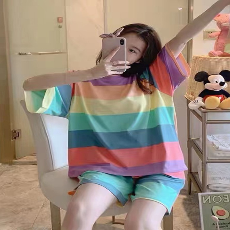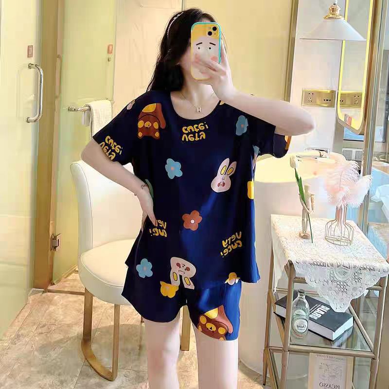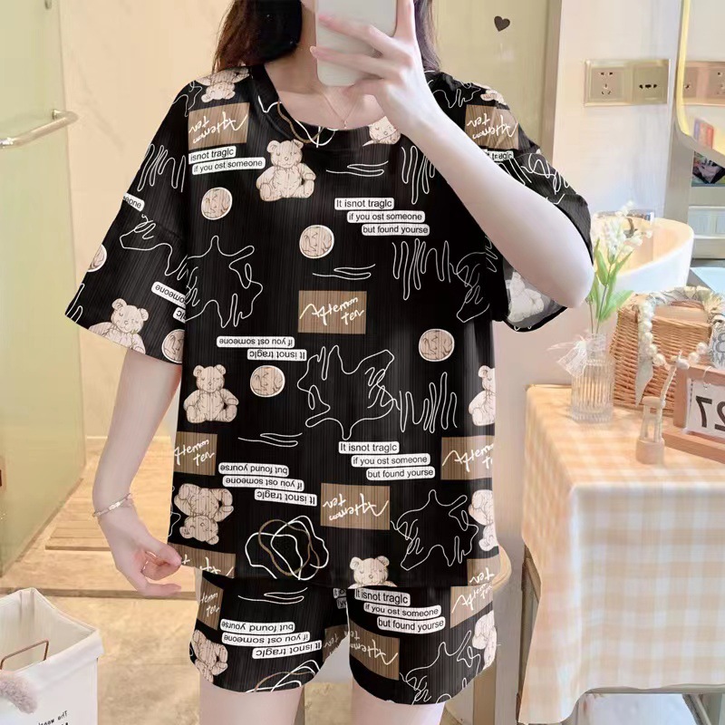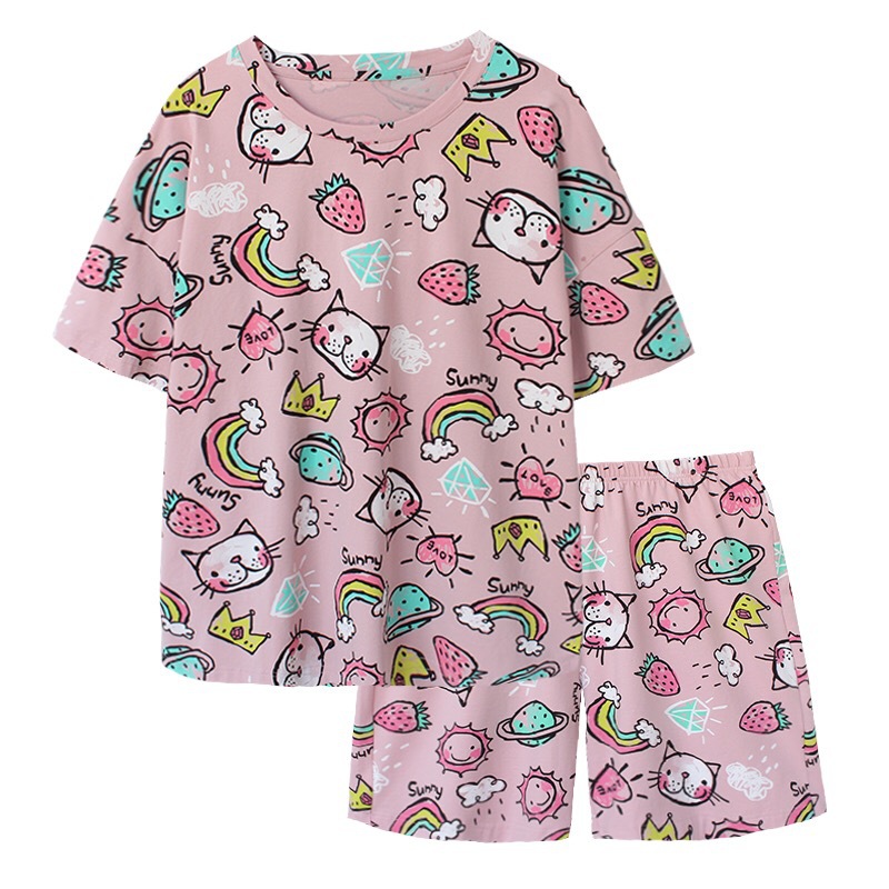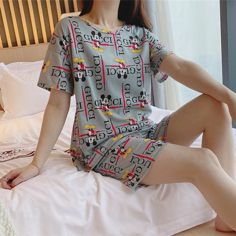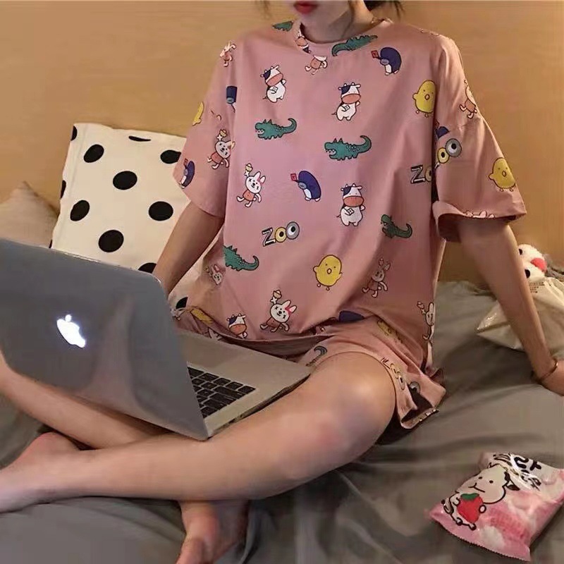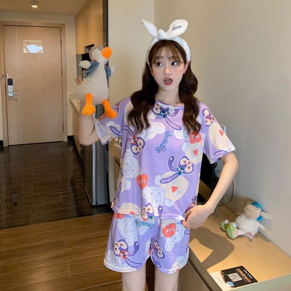 Главная страница > Женские пижамы, летние шорты с короткими рукавами, женский повседневный тонкий стиль с героями мультфильмов, можно носить на улице, комплект летней домашней одежды для девочек.