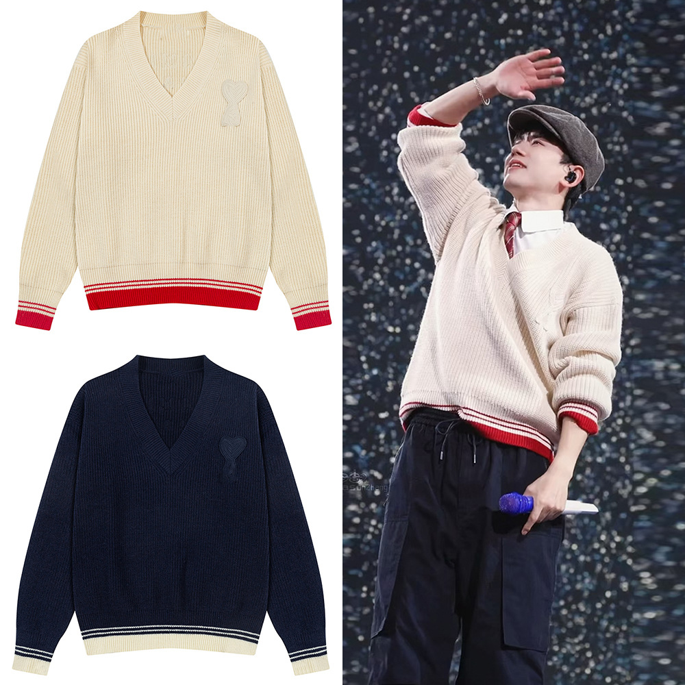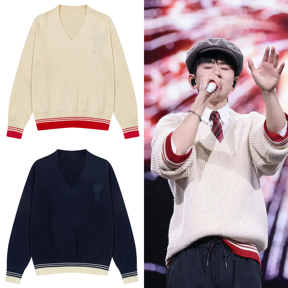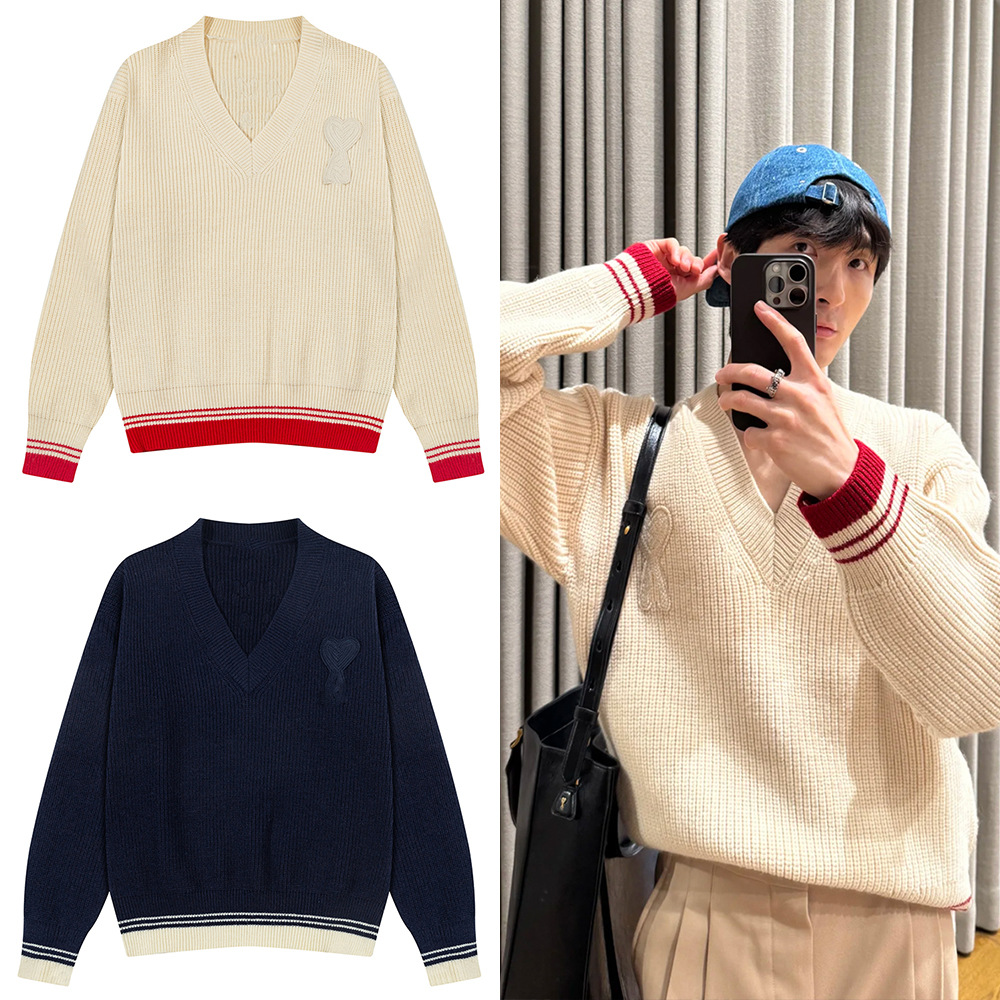 Главная страница > AMI ANCIENT унисекс трикотажный топ с v-образным вырезом в полоску и вышитым сердечком, трикотажный топ с микроэтикеткой