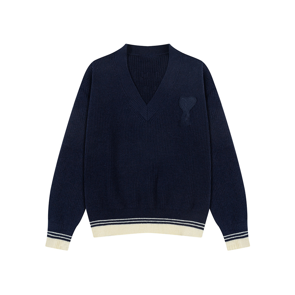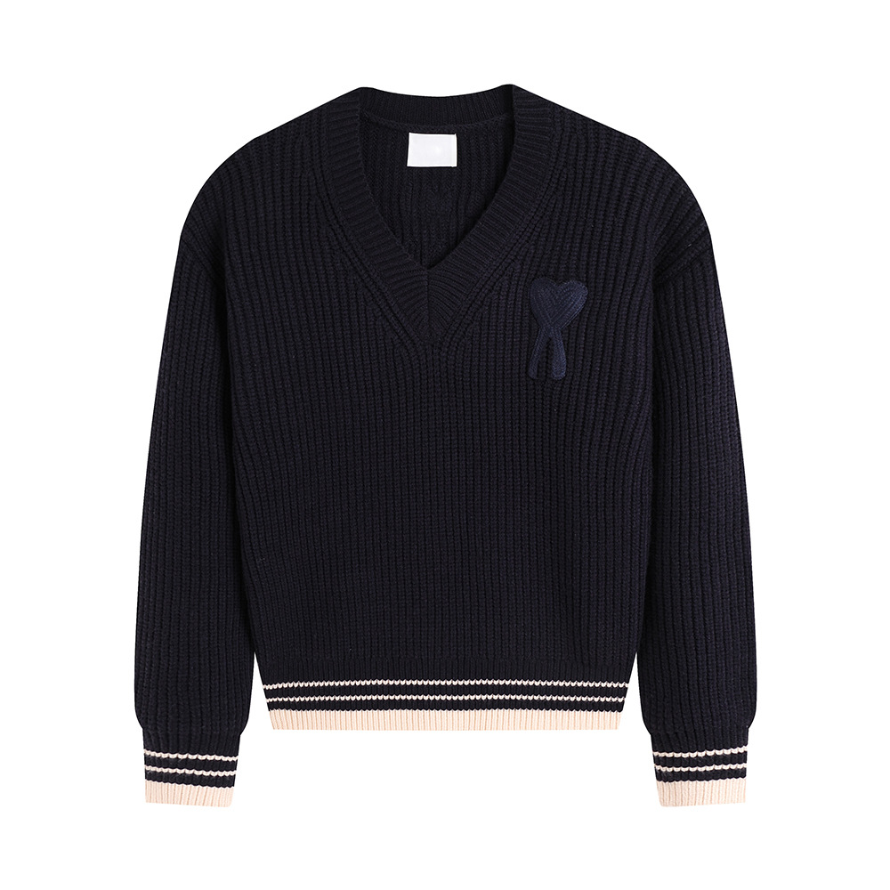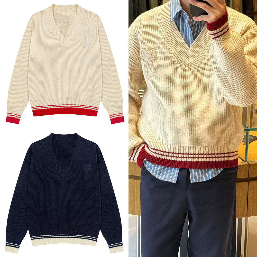 AMI ANCIENT унисекс трикотажный топ с v-образным вырезом в полоску и вышитым сердечком, трикотажный топ с микроэтикеткой