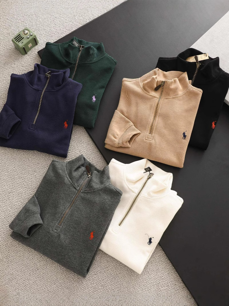 Главная страница > Трансграничная поставка высококачественной трикотажной толстовки с высоким воротником и длинными рукавами с логотипом RL Raffy Pony для мужчин и женщин с лацканами