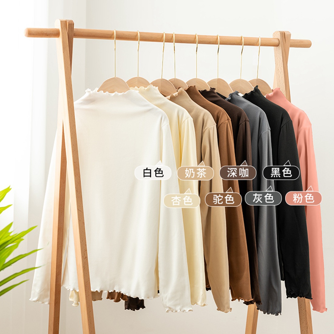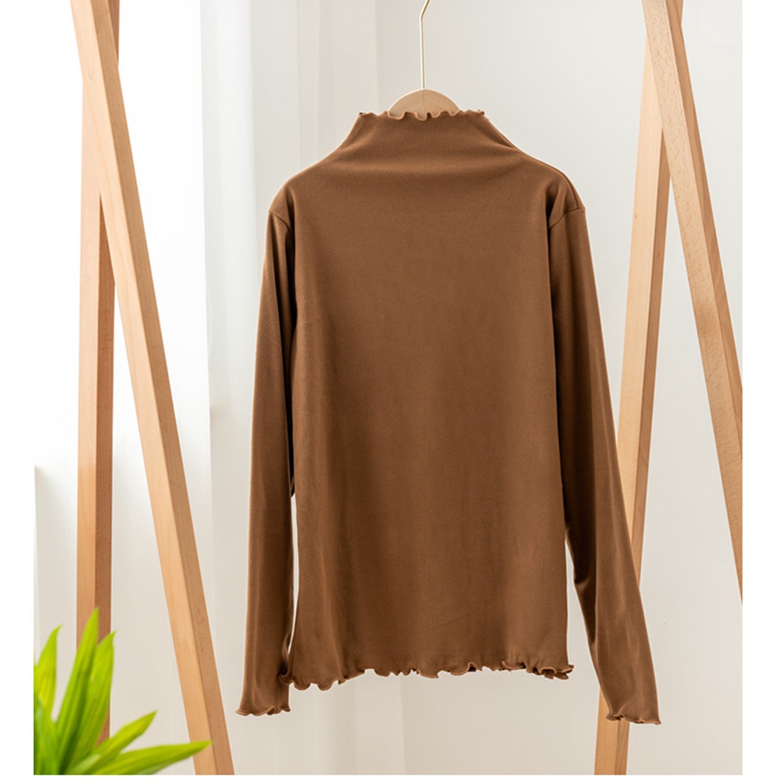 Главная страница > Осенне-зимняя женская термобелье с полувысоким воротником и рюшами, двусторонний теплый топ с длинными рукавами и закругленными краями в корейском стиле.