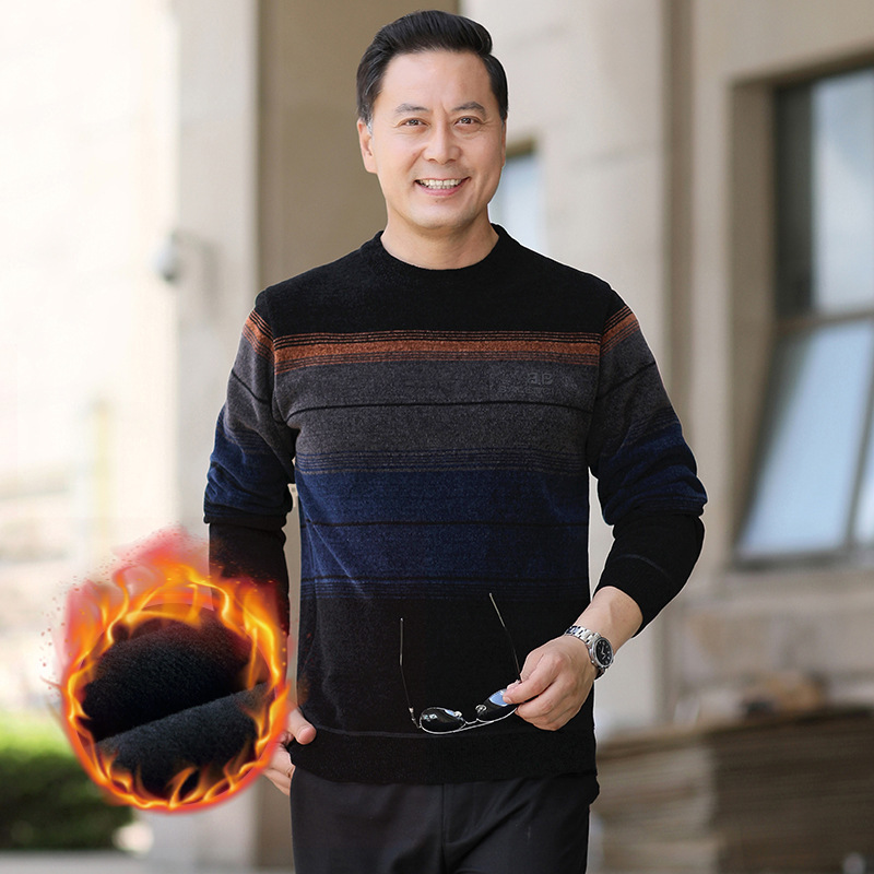 Главная страница > Свитер из синели для папы среднего возраста, мужская осенне-зимняя цельная утепленная вязаная рубашка на флисовой подкладке, базовая теплая одежда