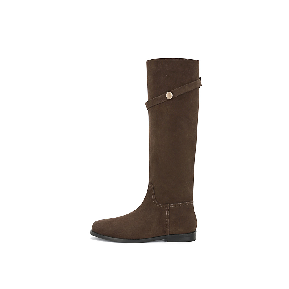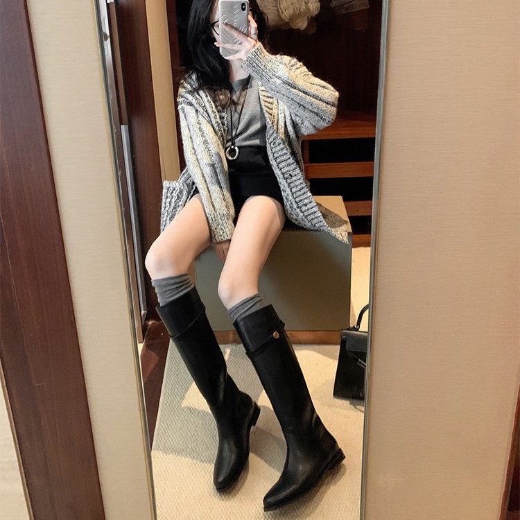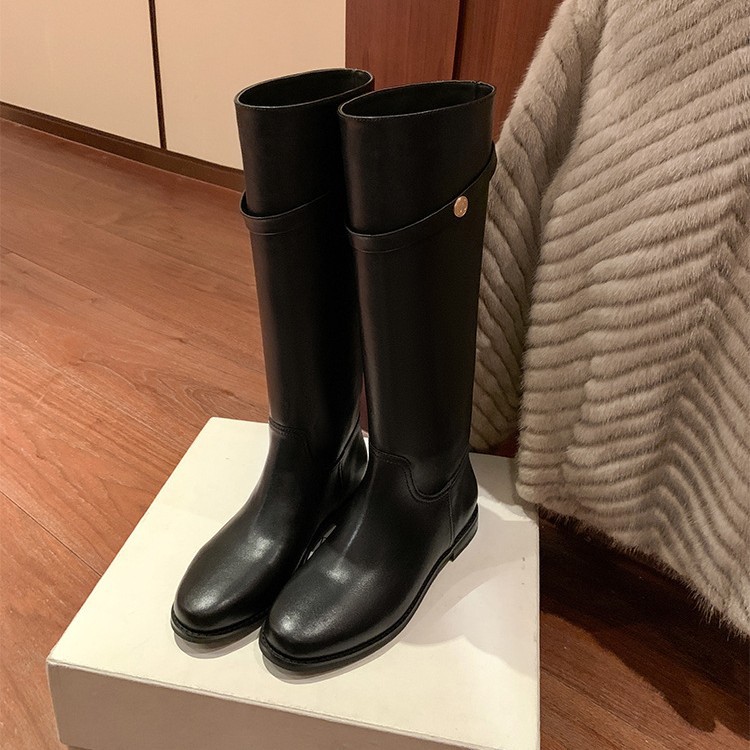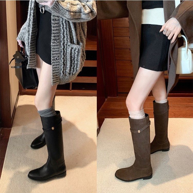 Главная страница > [В том же стиле, что и Су Цзя] Героиньи корейских драм~ Корейские сапоги из натуральной кожи с маленькой золотой пряжкой, средней высоты, длинные сапоги, женские сапоги для верховой езды