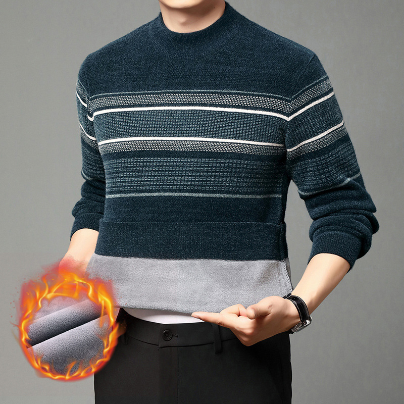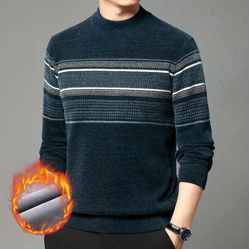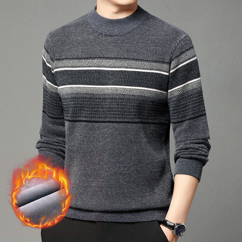 Главная страница > Хорьковый бархатный свитер мужской зимний бархатный теплый свитер среднего возраста повседневный полувысотный полосатый папа топ