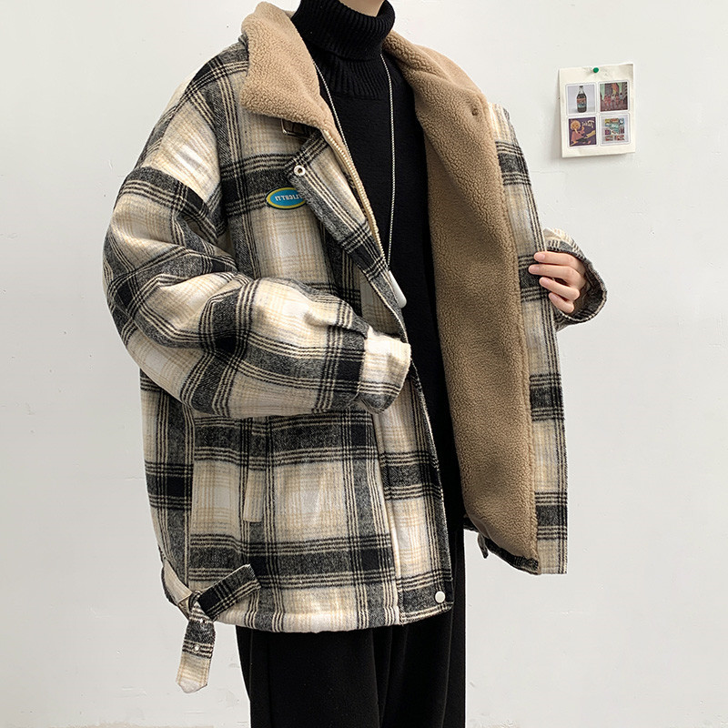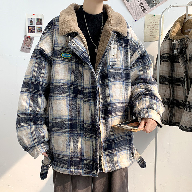 Главная страница > Кашемировое хлопковое пальто в клетку, Мужская зимняя Утепленная зимняя Модная брендовая куртка на флисовой подкладке, красавое свободное хлопковое пальто для подростков