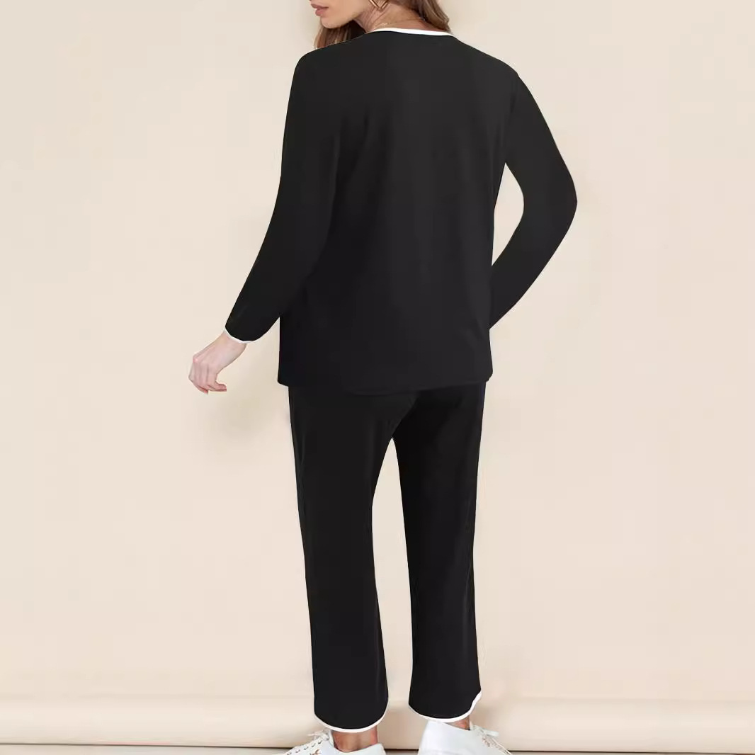 Amazon трансграничная Европа осень-зима новый сплошной цвет с v-образным вырезом свободный комфорт повседневный дом шнур брюки костюм женский