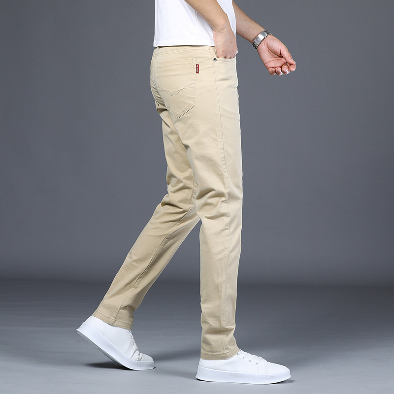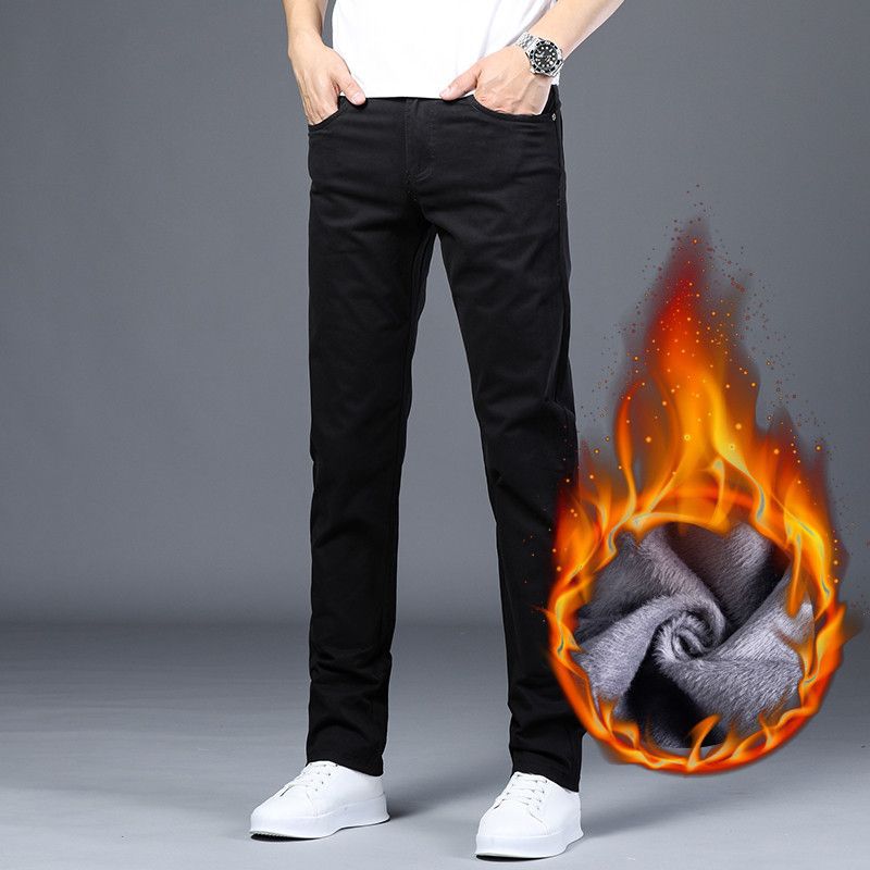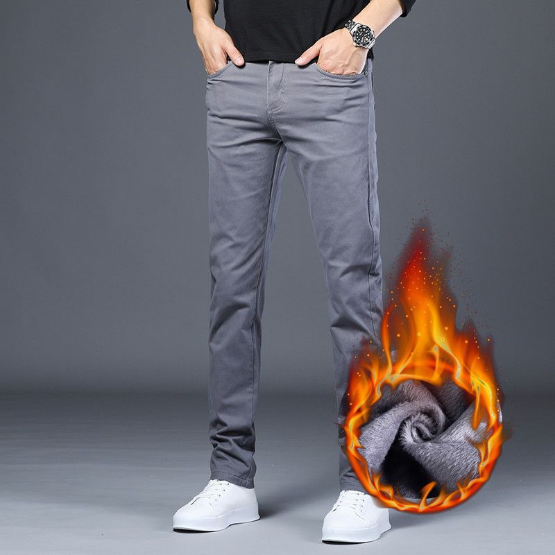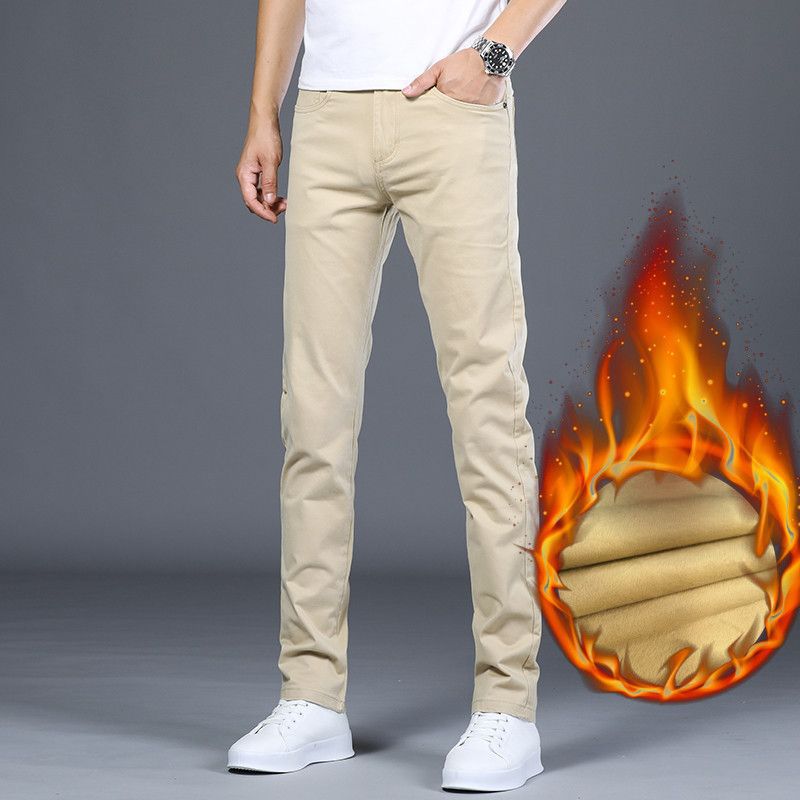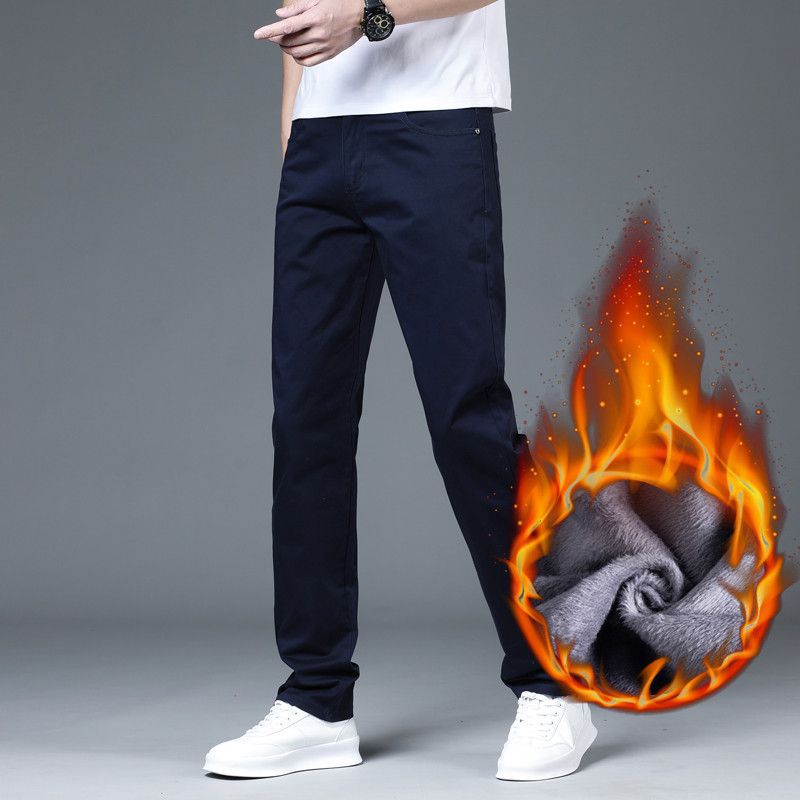 Главная страница > Высококачественные повседневные брюки из чистого хлопка для мужчин, осенне-зимние, на флисовой подкладке, утолщенные, облегающие длинные брюки, универсальные модные эластичные брюки прямого кроя для мужчин.