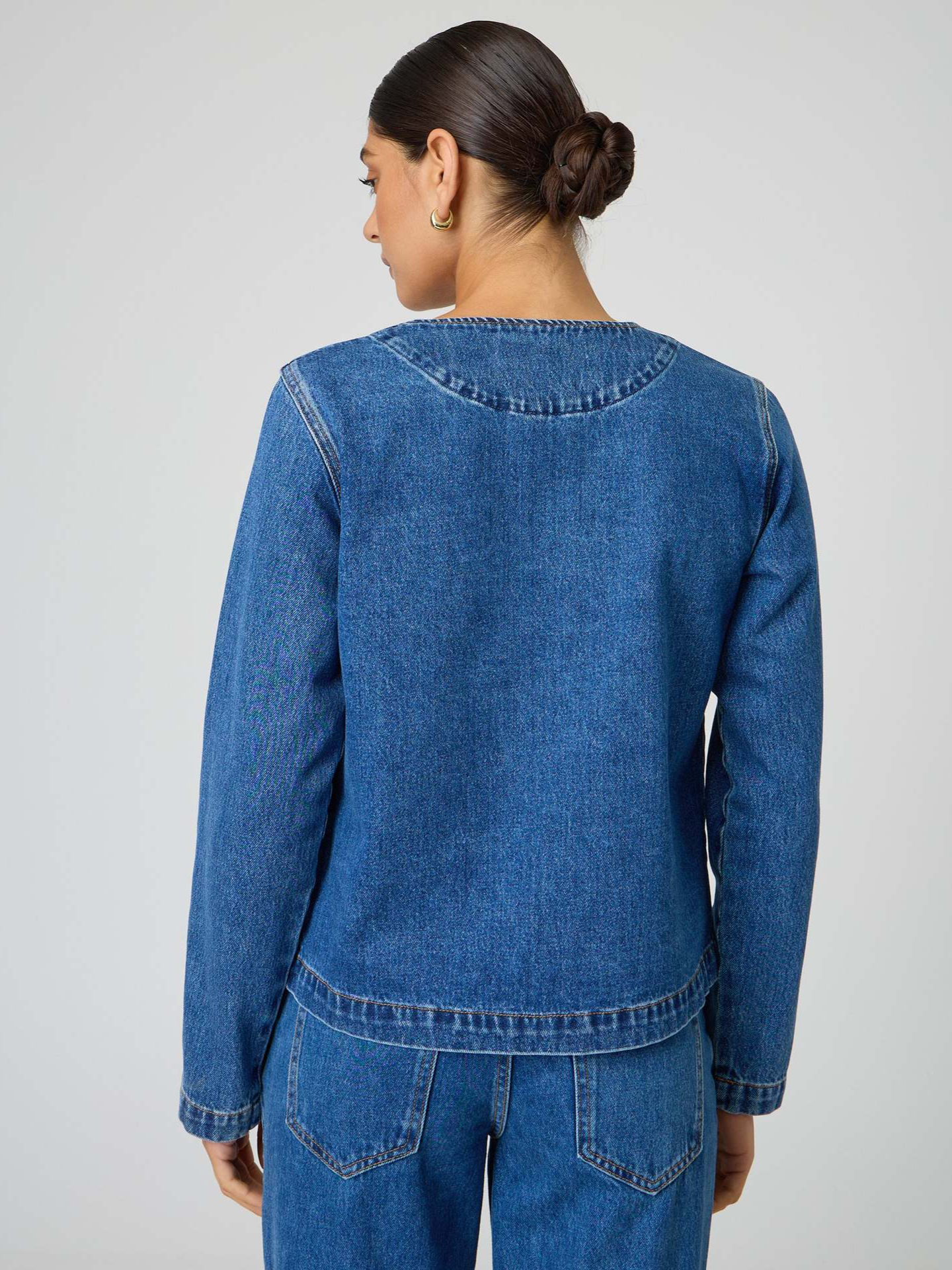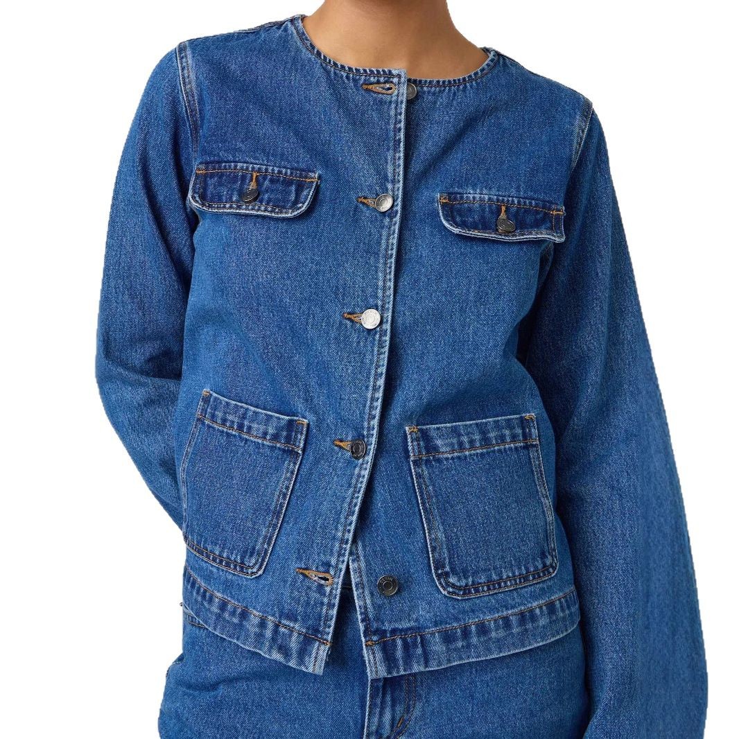 EBay Independent Station wish Европа и США трансграничная внешняя торговля женская новая мода с круглым вырезом синяя куртка джинсовый топ женский