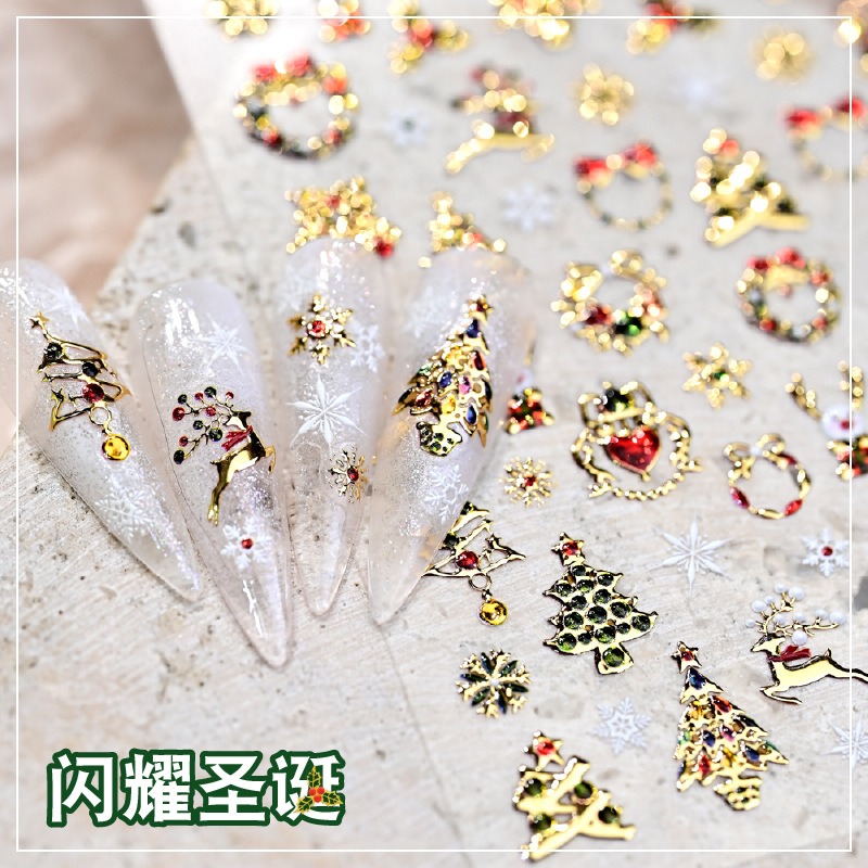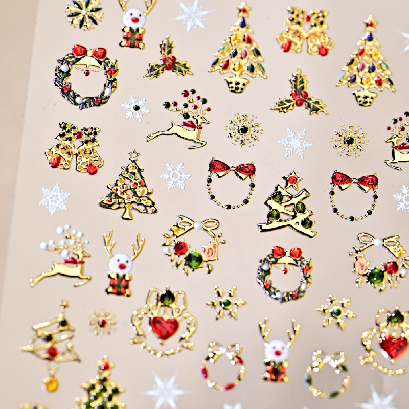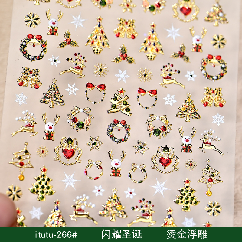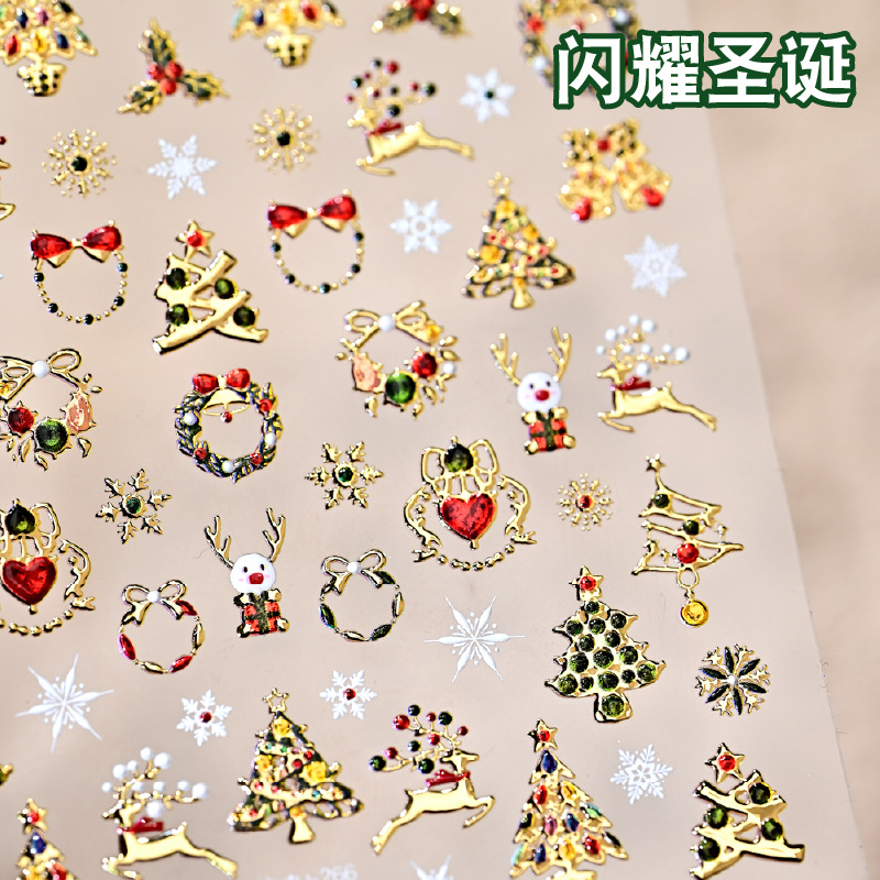 Главная страница > Новый стиль блеска рождественский тиснение тиснение рельефной наклейки для ногтей Рождественская елка лося снежинка венок рождественский элемент наклейки для ногтей