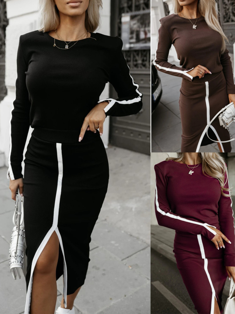 2024 независимая станция желаний Amazon, новая осенне-зимняя мода, однотонный костюм-двойка с длинными рукавами и разрезом для женщин