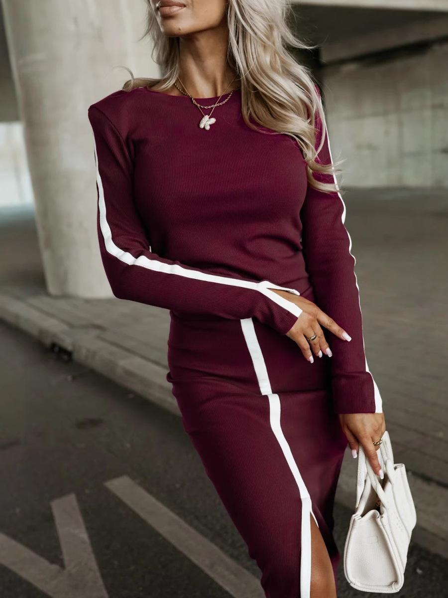 Главная страница > 2024 независимая станция желаний Amazon, новая осенне-зимняя мода, однотонный костюм-двойка с длинными рукавами и разрезом для женщин