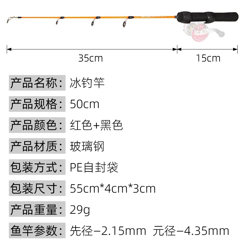 Кросс-граничная портативная удочка для зимней рыбалки из прочного стекловолокна, простая ультракороткая удочка 50 см, удочка с прямой рукояткой, оптом в наличии.