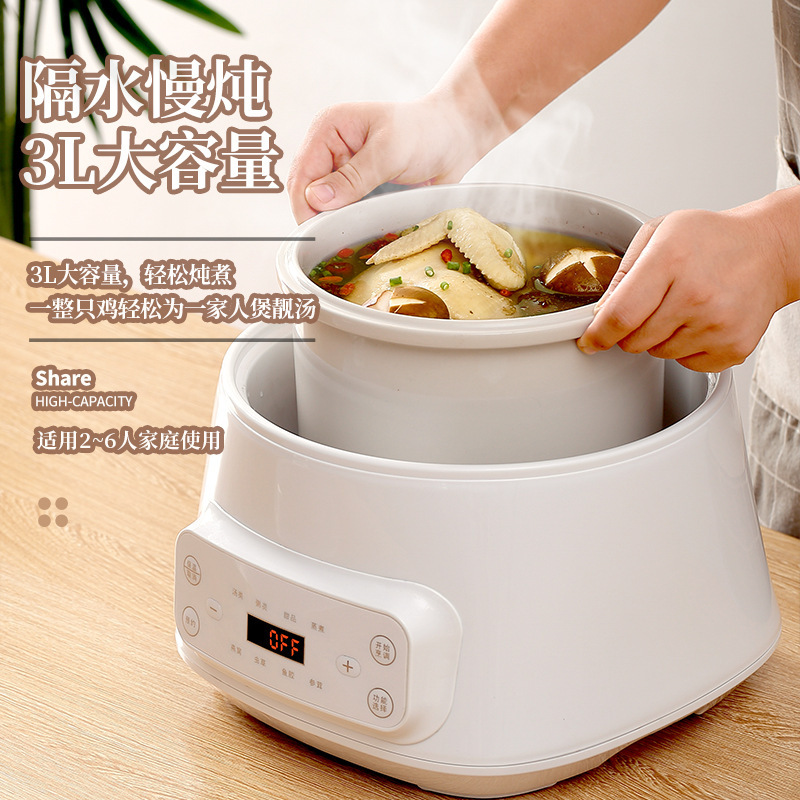 Главная страница > Электрическая кастрюля 3L Водоразделенная кастрюля автоматическая электрическая запеканка керамическая бытовая маленькая электрическая чашка для тушения