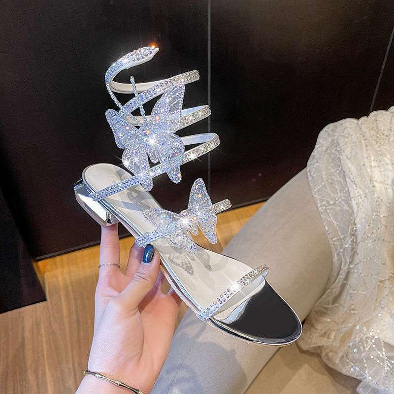 Главная страница > Летние новые стильные босоножки на низком каблуке с толстым каблуком в форме змеи, украшенные стразами и бантом, в римском стиле, с полустопкой, в стиле феи.
