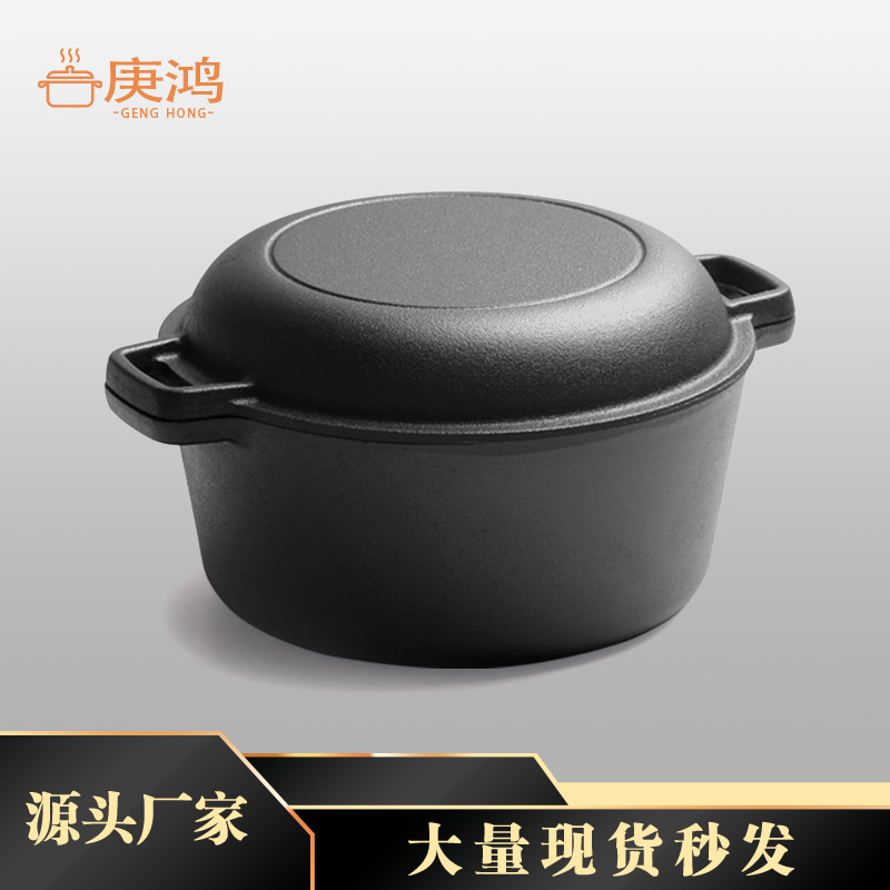 Кастрюля для выпечки хлеба TEMU, жарка и тушения, многофункциональная кастрюля двойного ушка «два в одном», кастрюля двойного назначения, глубокая чугунная кастрюля, голландская кастрюля
