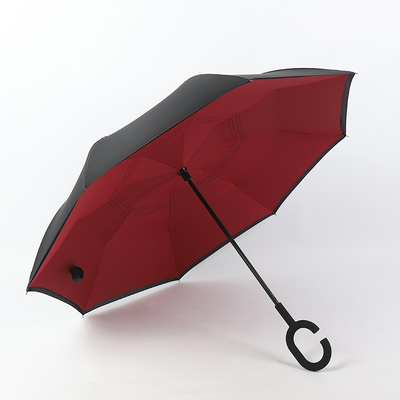 Главная страница > Двухслойный обратный зонт с длинной ручкой, автомобильный зонт C-типа для стояния без помощи рук, прямая ручка, утолщенный большой двойной зонт для мужчин и женщин