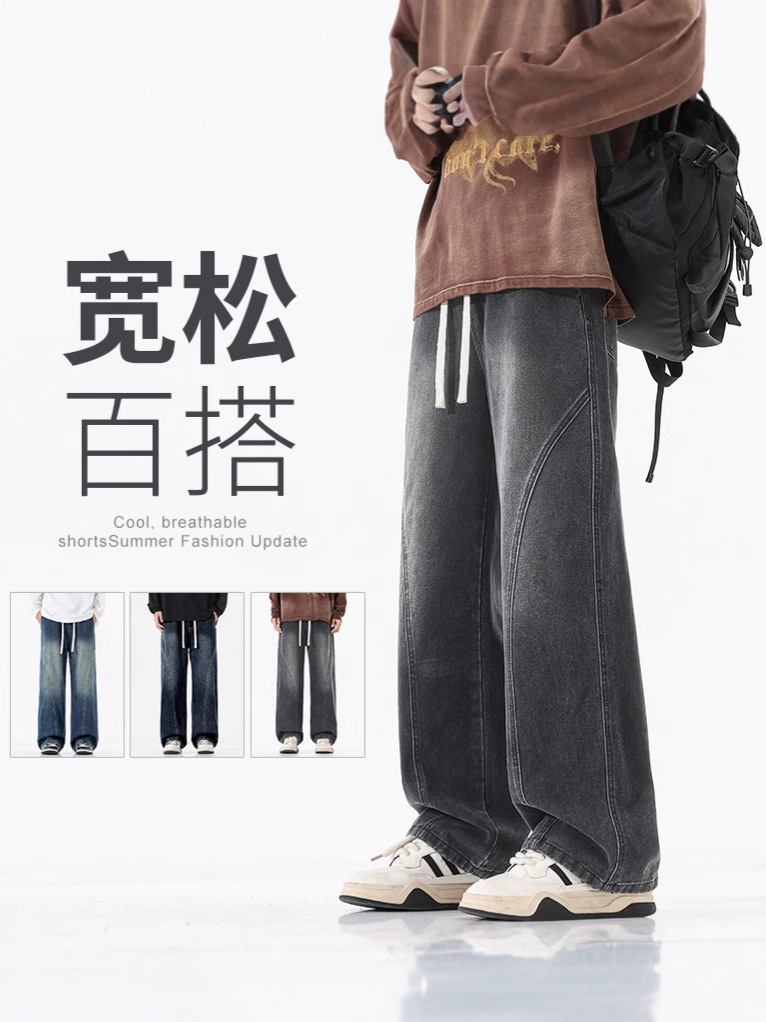 Главная страница > Мужские летние тонкие модные свободные прямые широкие джинсы, новые американские уличные ретро-джинсы