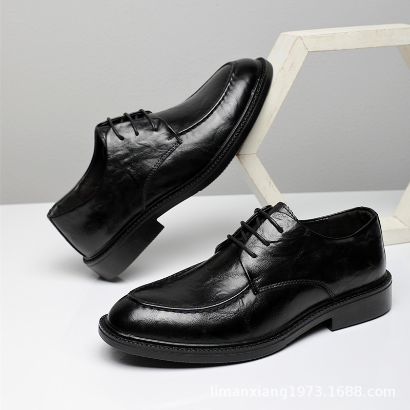 Главная страница > Мужские кожаные туфли для бизнеса и повседневной носки, дышащие, с мягкой подошвой и мягкой поверхностью, британские свадебные туфли, новинка 2025 года.
