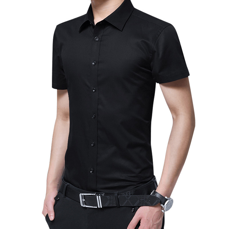 Главная страница > 2023 летние взрывы, новая мужская рубашка с короткими рукавами, Повседневная Деловая рабочая одежда, приталенная Однотонная рубашка 2618A