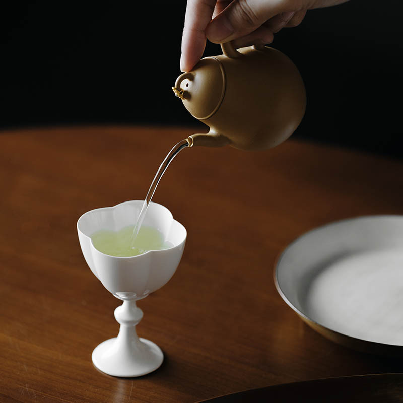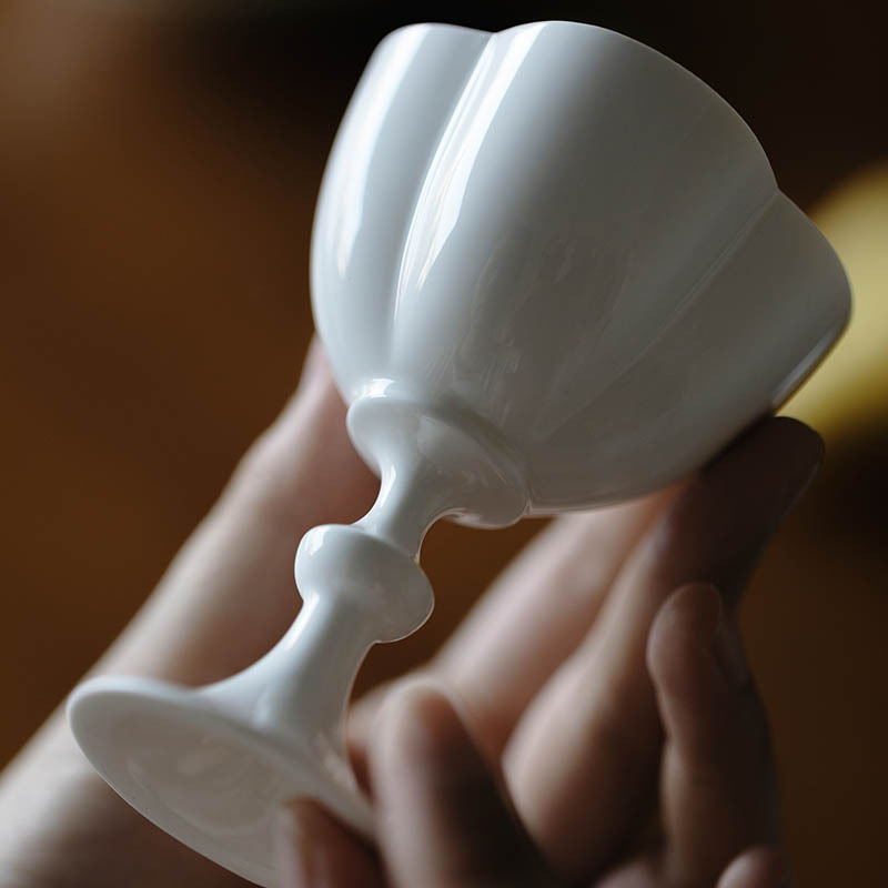 Главная страница > Луч резной бумаги белая глазурь высокие лепестки ног Японский мастер чашка чая чашка высокая нога богиня чашка элегантный чистый белый Одиночная чашка ручной работы