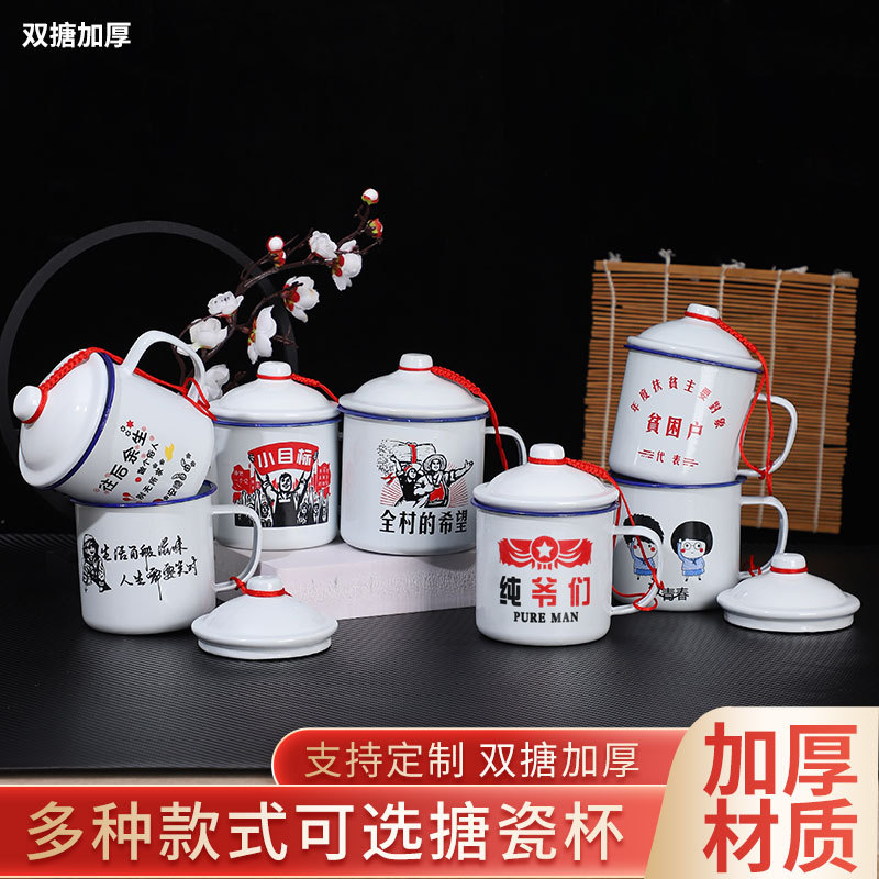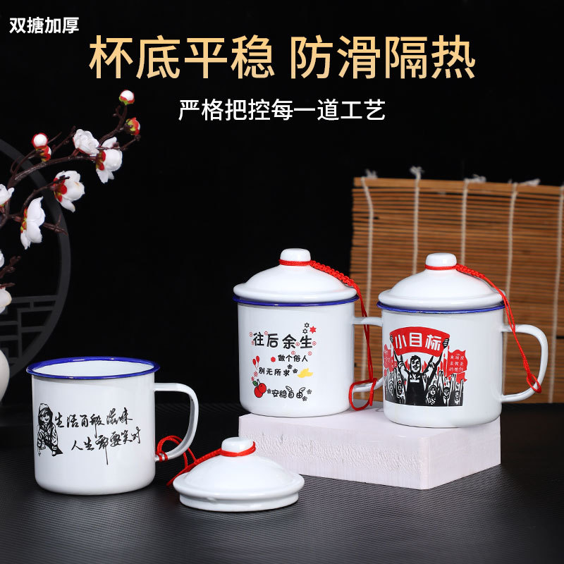 Главная страница > Эмалированная кружка, ностальгическая кружка, утолщенный чайник из железа большой емкости, с надписями, можно нанести логотип, винтажная кружка для воды
