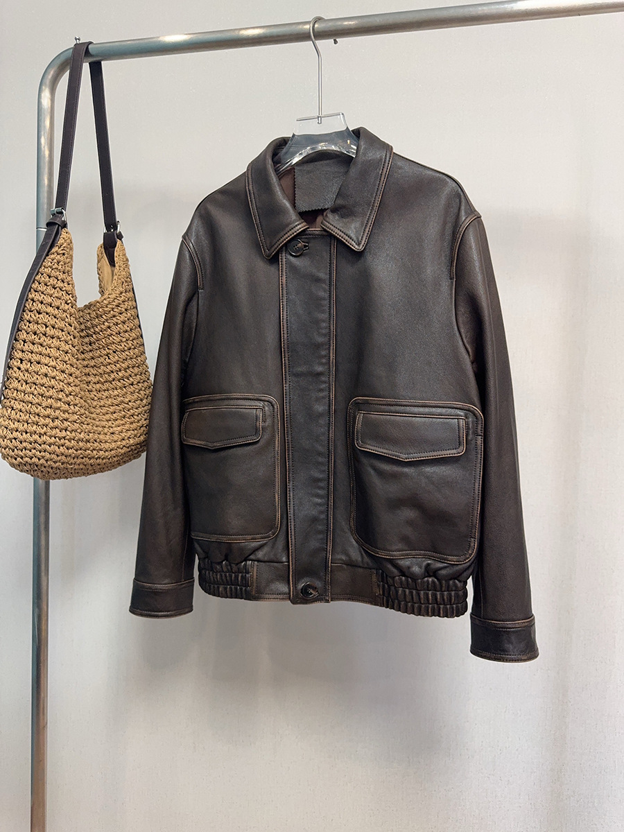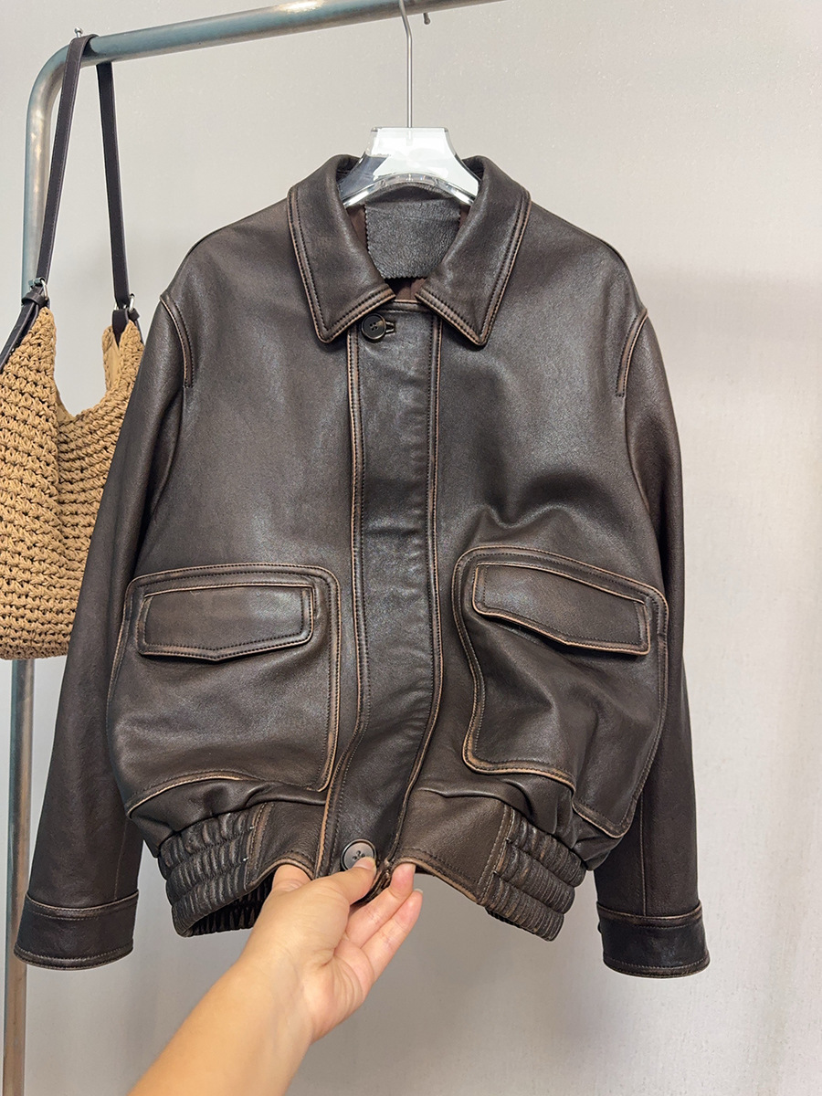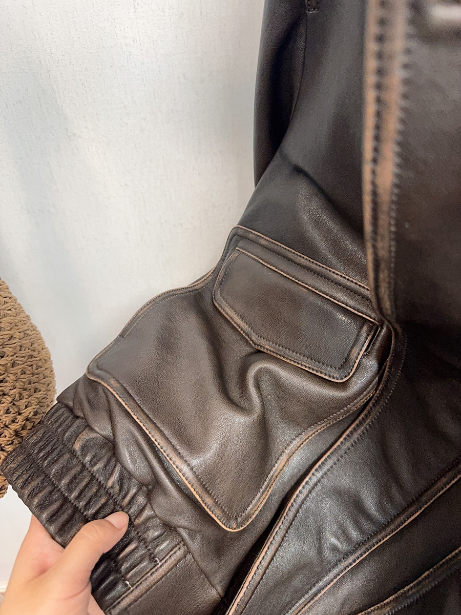Главная страница > Женская кожаная куртка винтажного стиля, ретро, потертая, из натуральной овчины, мотоциклетная куртка, новая модель осень/зима 2025 года.