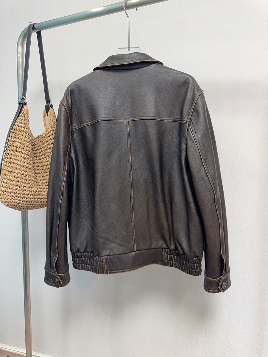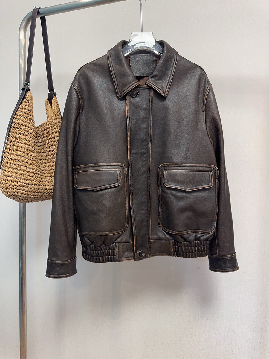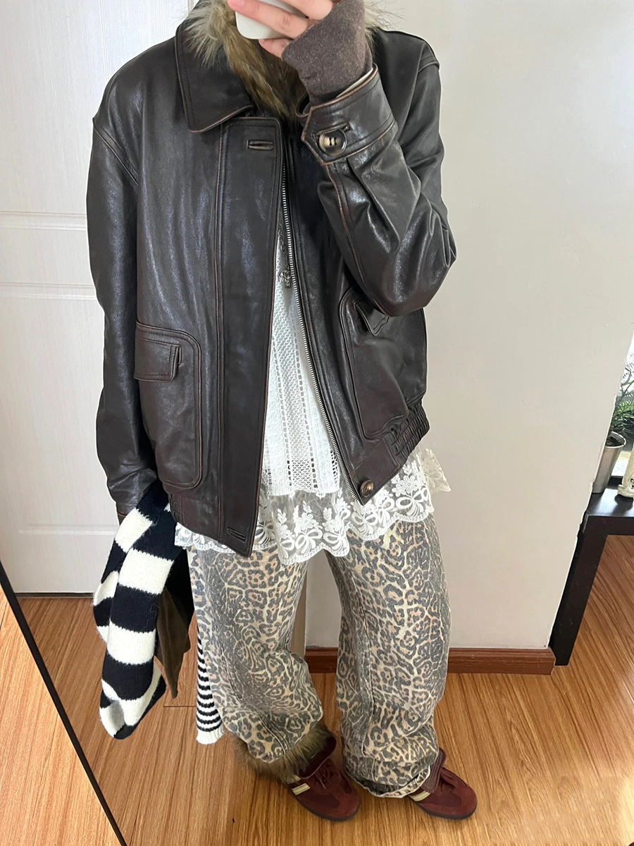 Главная страница > Женская кожаная куртка винтажного стиля, ретро, потертая, из натуральной овчины, мотоциклетная куртка, новая модель осень/зима 2025 года.