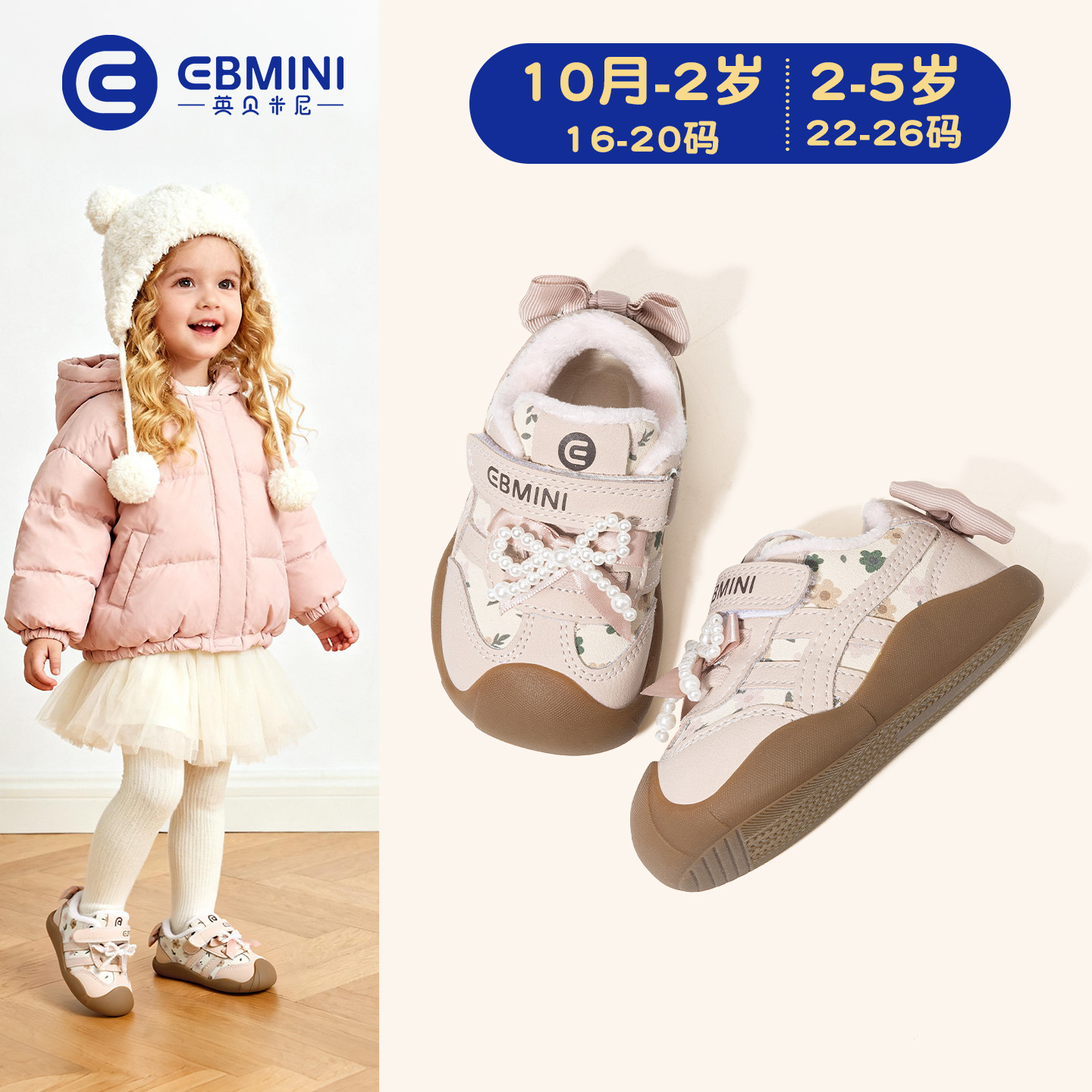 Детские кроссовки Inbemini для девочек, осенне-зимние, на флисовой подкладке, новинка 2025 года, с бантом, для малышей, туфли для маленьких принцесс
