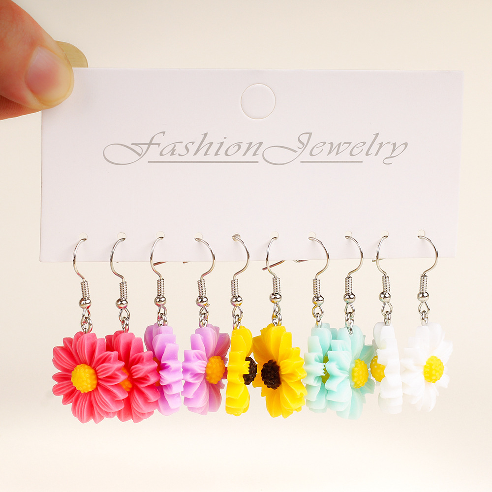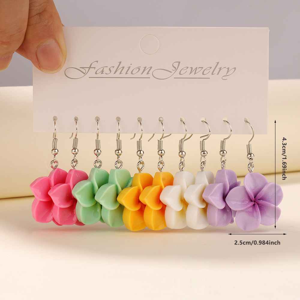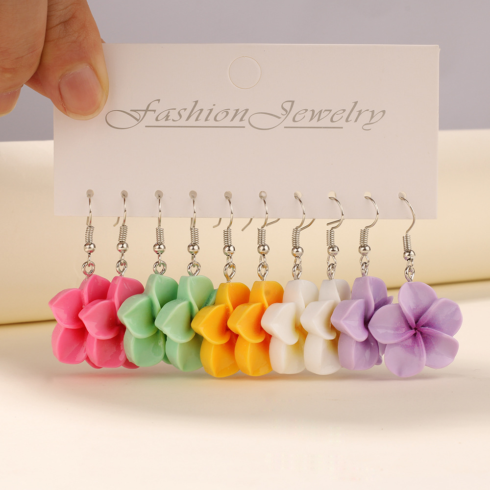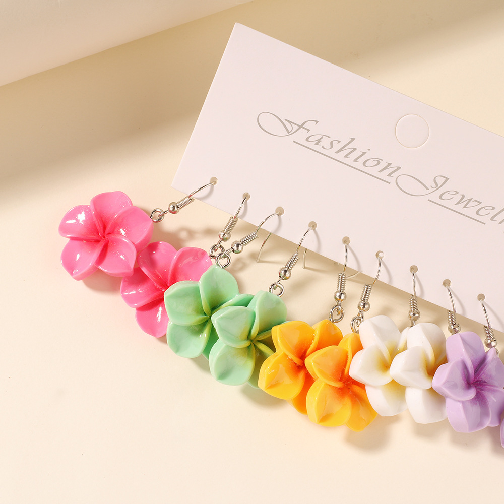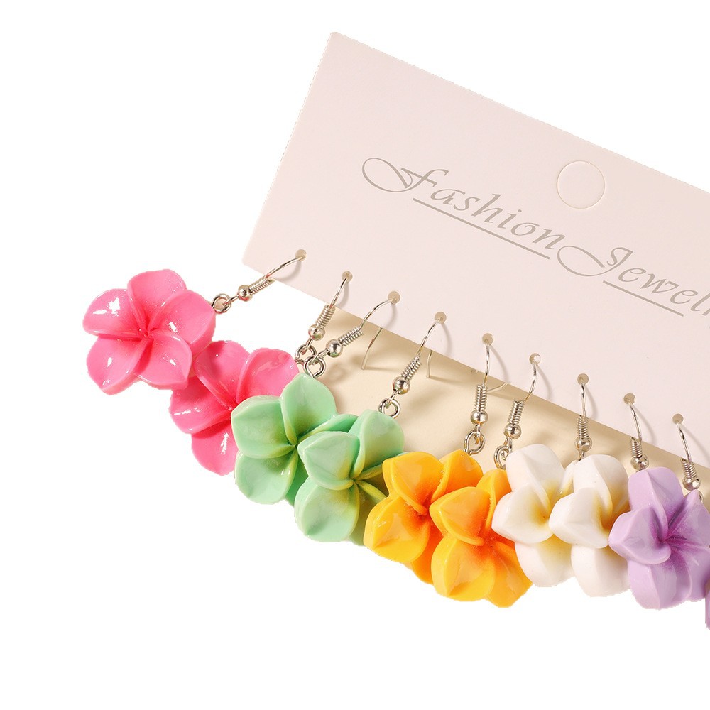 Главная страница > Набор из пяти пар серег с цветами франжипани из смолы для женщин, богемные пляжные серьги, трансграничные продажи