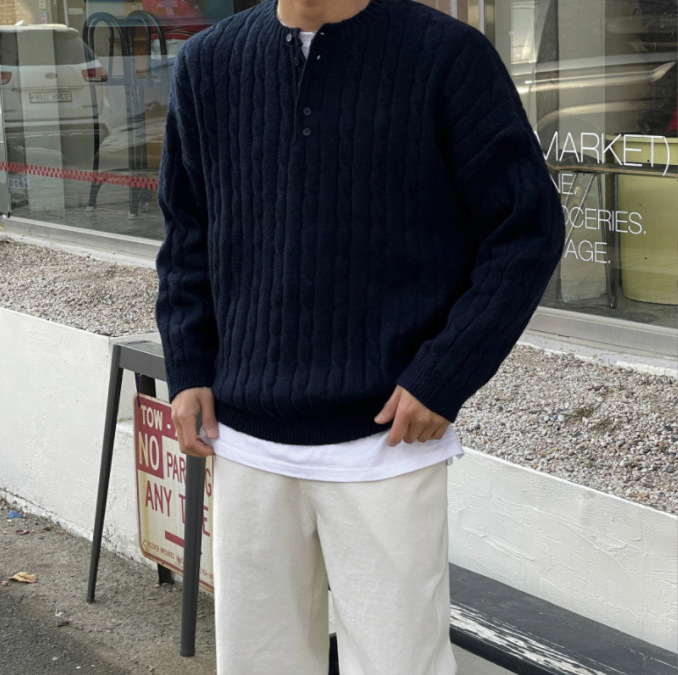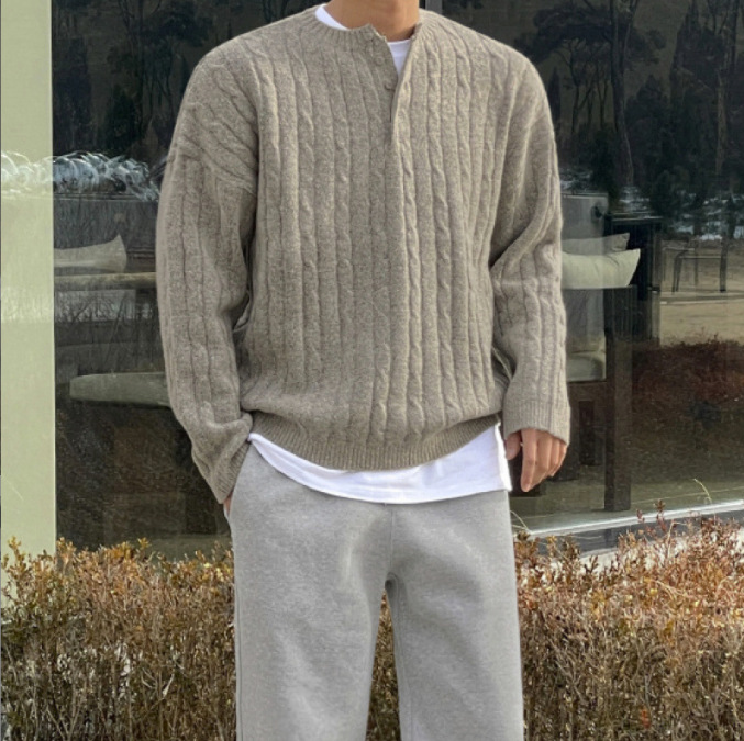 Главная страница > Ретро Твит Генри Вязаный свитер мужской осень-зима