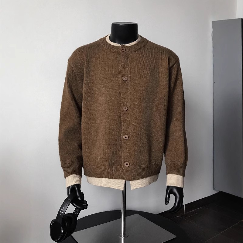 Американский ретро поддельные две пуговицы дизайн свитер весенний тренд новый свободный повседневный дикий кардиган куртка мужской