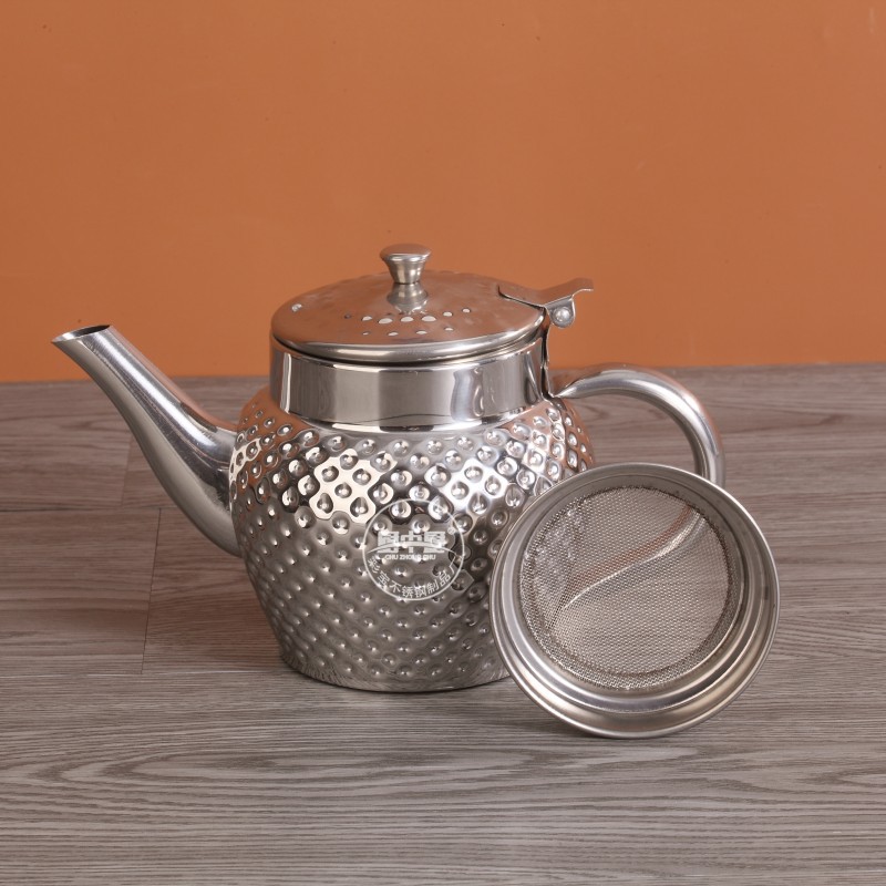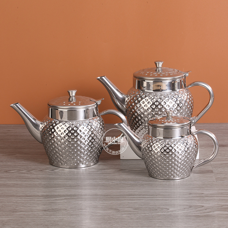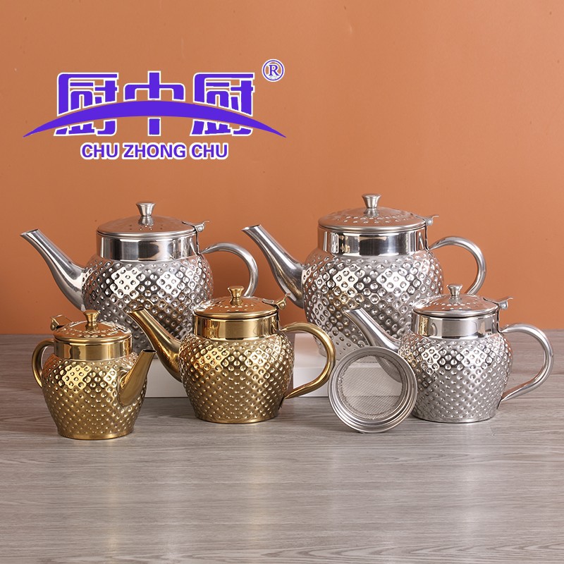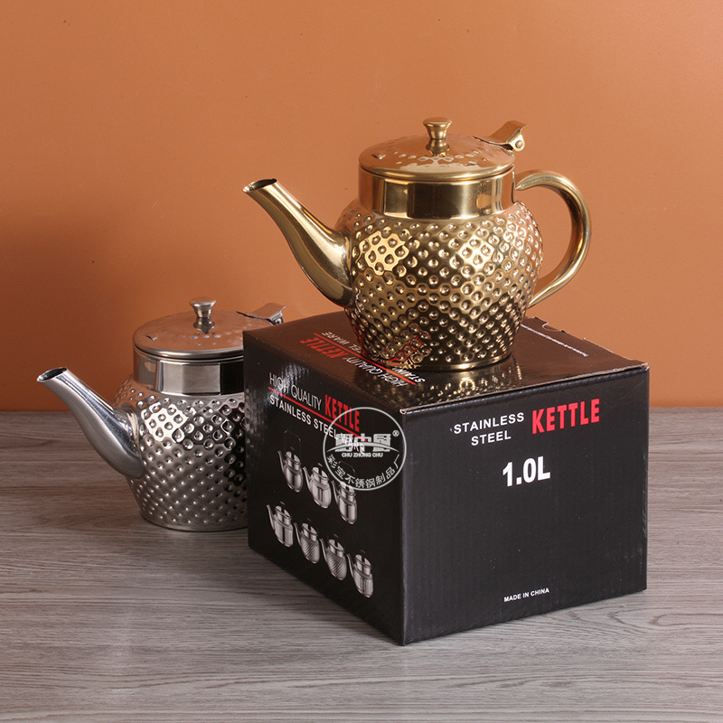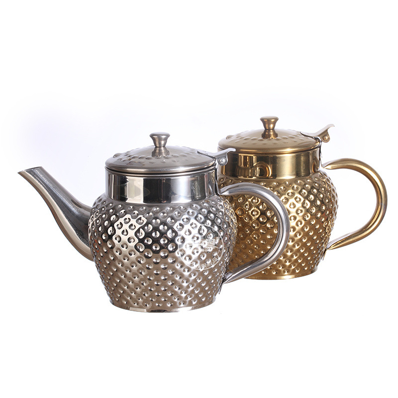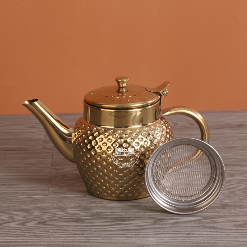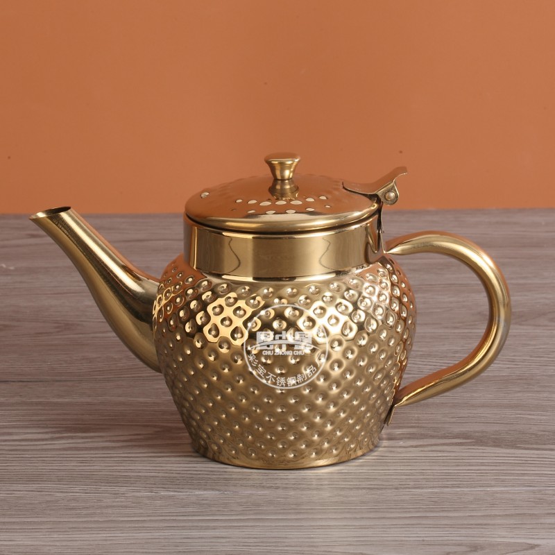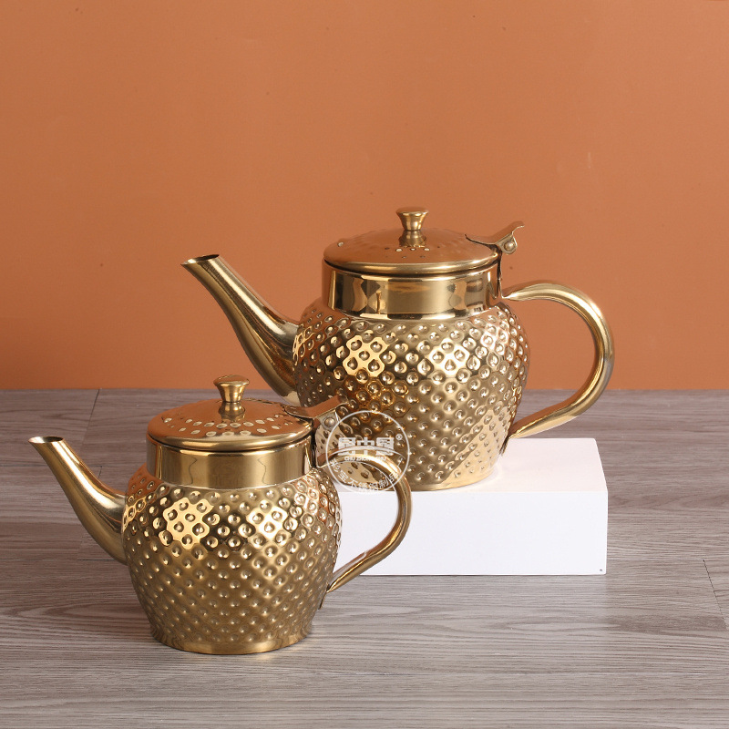 Главная страница > Трансграничный чайник из нержавеющей стали, кофейник на одну порцию, немагнитный индийский чайник, позолоченный с чеканной текстурой и масляным фильтром.